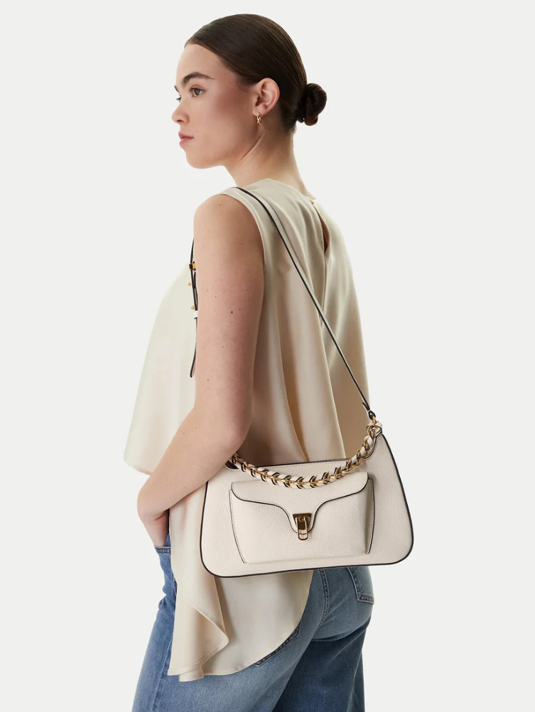 La borsa di Coccinelle della linea Beat  (modello E1TFK120101) è l'accessorio perfetto per chi cerca praticità senza rinunciare a un'estetica ricercata. Si distingue per la sua linea a "camera bag" e per l'iconica chiusura a plettro. Realizzata in pelle con grana di alta qualità, questa borsa è pensata per resistere all'uso quotidiano mantenendo inalterata la sua bellezza. La struttura presenta una pratica tasca esterna frontale, ideale per tenere lo smartphone o i documenti sempre a portata di mano. La catenina fissa permette di indossarla a spalla o a braccio, donandole un tocco luminoso e glam. La forma a metà strada tra la "hobo" e la "baguette" la rendono perfetta per vari look ricercarti ma sempre veloci e casul.