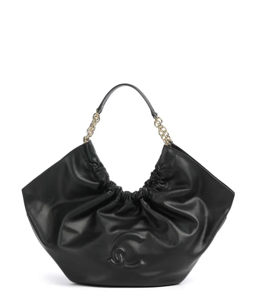 La linea Coccinelle Smash incarna un’estetica contemporanea fatta di linee curve e volumi morbidi. Il modello in questione si distingue per la sua silhouette a "mezzaluna" (hobo bag) che si adatta perfettamente alla spalla, offrendo il massimo comfort senza rinunciare allo stile. Manici fissi con pelle e metallo la rendono perfetta da indossare a spalla o a mano; chiusa da bottone interno calamitato internamente zip e taschino. Di dimensioni generose il che la rendono perfetta per i tuoi look giornalieri. Bello e innovativo il motivo della coulisse che dona movimento e originalità alla borsa.