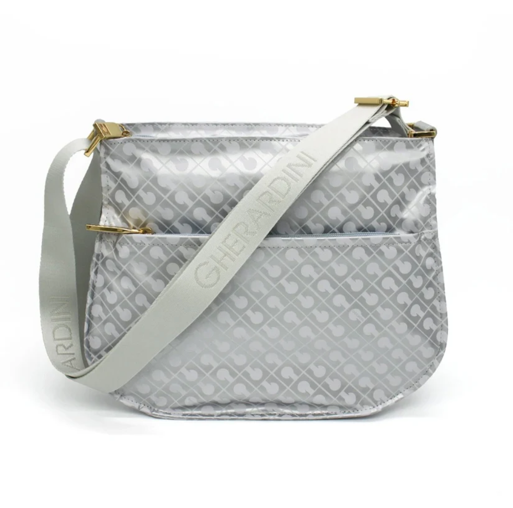 Rinnova il tuo stile con la borsa di Gherardini un classico intramontabile che unisce praticità e raffinatezza. Realizzata nell'esclusivo "tessuto softy"  questa borsa a tracolla è celebre per la sua incredibile leggerezza e la texture setosa al tatto, arricchita dal celebre monogramma all-over del brand fiorentino. Il modello GH0261 si distingue per le sue linee pulite e la sua estrema versatilità. La tracolla in tessuto è regolabile, permettendoti di indossarla comodamente a spalla o crossbody per una libertà di movimento totale durante la giornata. Le tonalità del tessuto quasi metallizzate aggiungono un tocco di luce contemporanea a qualsiasi outfit, dal più casual al più ricercato.