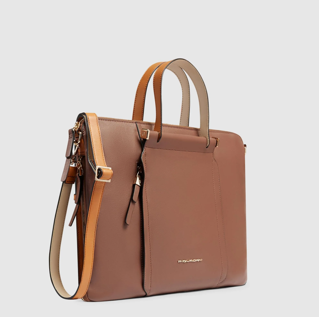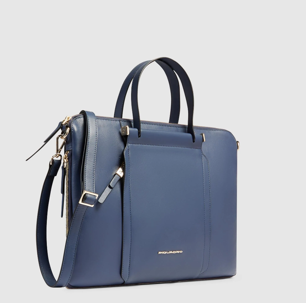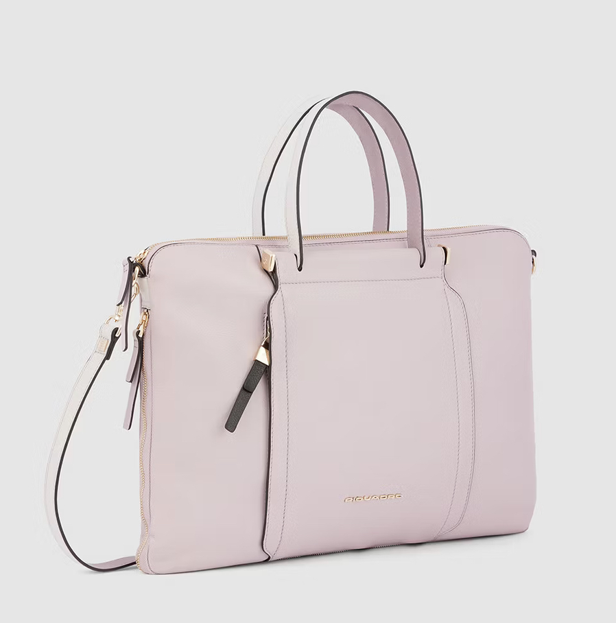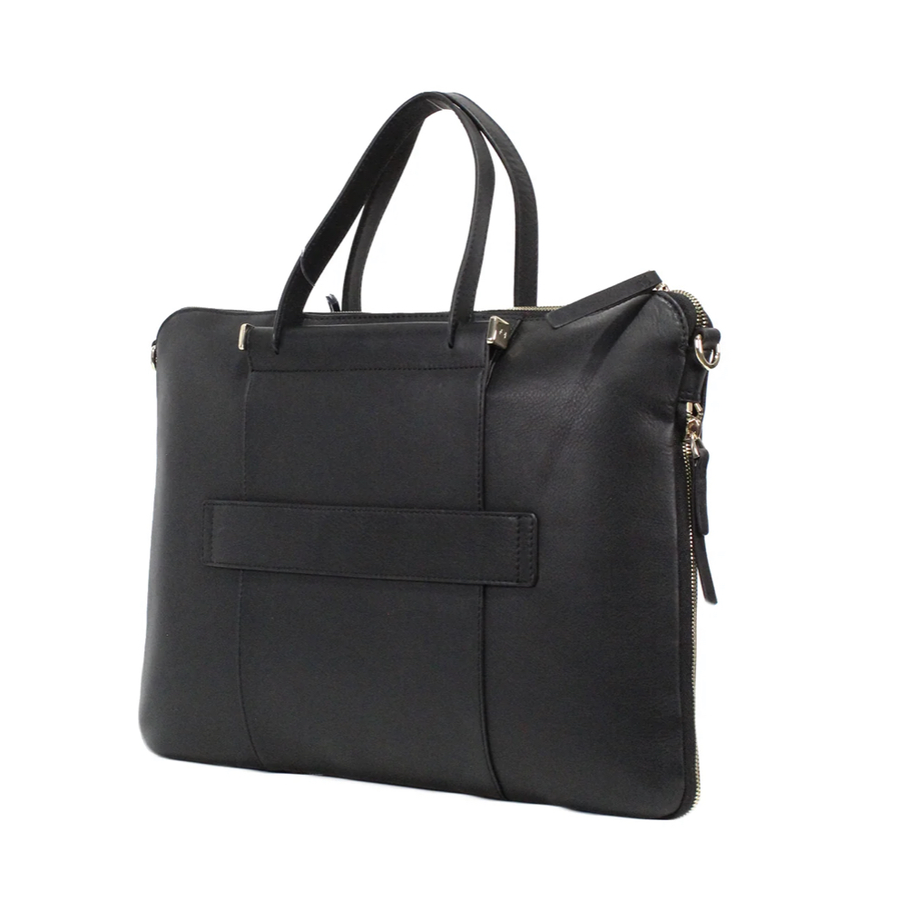 Cartella in pelle due manici espandibile. Chiusa con zip la cartellina ha la possibilità di espandersi in larghezza grazie alla zip sottostante. Interno imbottito per riporre il pc da 15.6" e tutti gli oggetti del lavoro. Da indossare a mano oppure a spalla grazie alla tracolla regolabile e removibile.