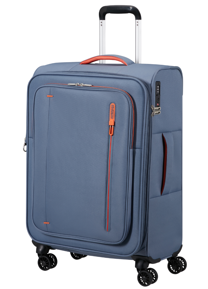 Trolley in tessuto, quattro ruote con traino estraibile. Dimensione  M EXP quindi espandibile. Super light e confortevole per i viaggi.