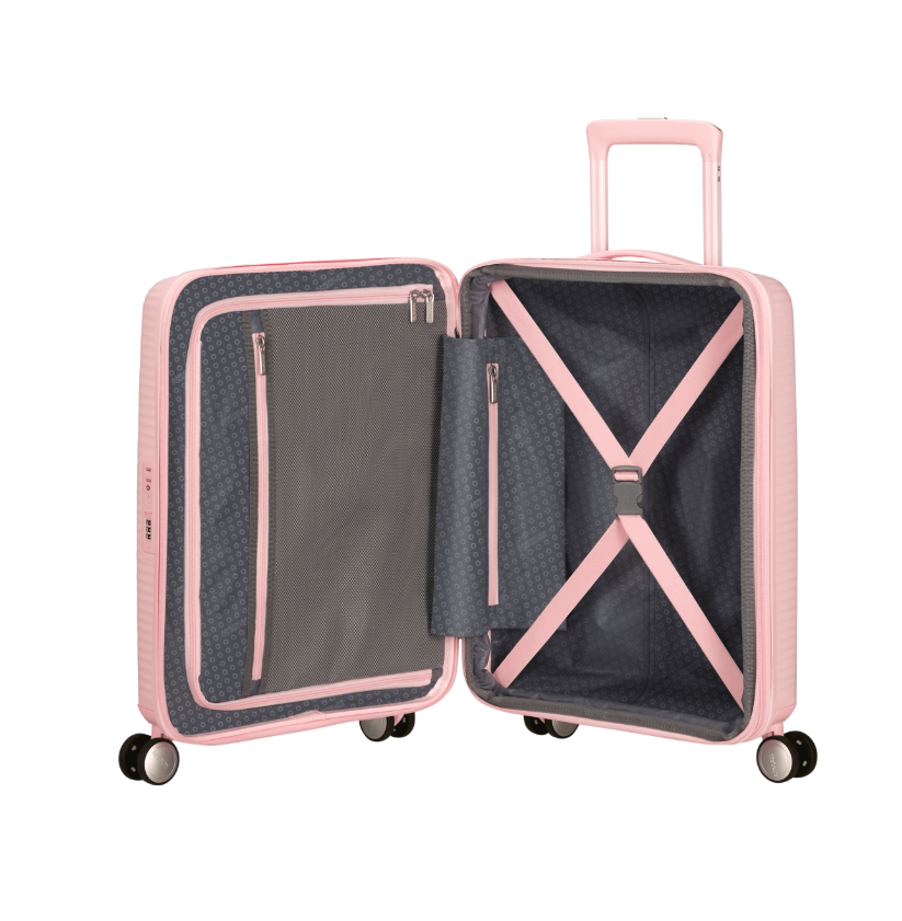 Trolley cabina 55/20, con doppia zip espandibile. Internamente suddiviso in due vani: uno con tasca con cerniera e uno con bretella portabiti. Chiusura con combinazione TSA, quattro ruote di cui ognuna è doppia per permettere una perfetta portabilità. Traino espandibile.