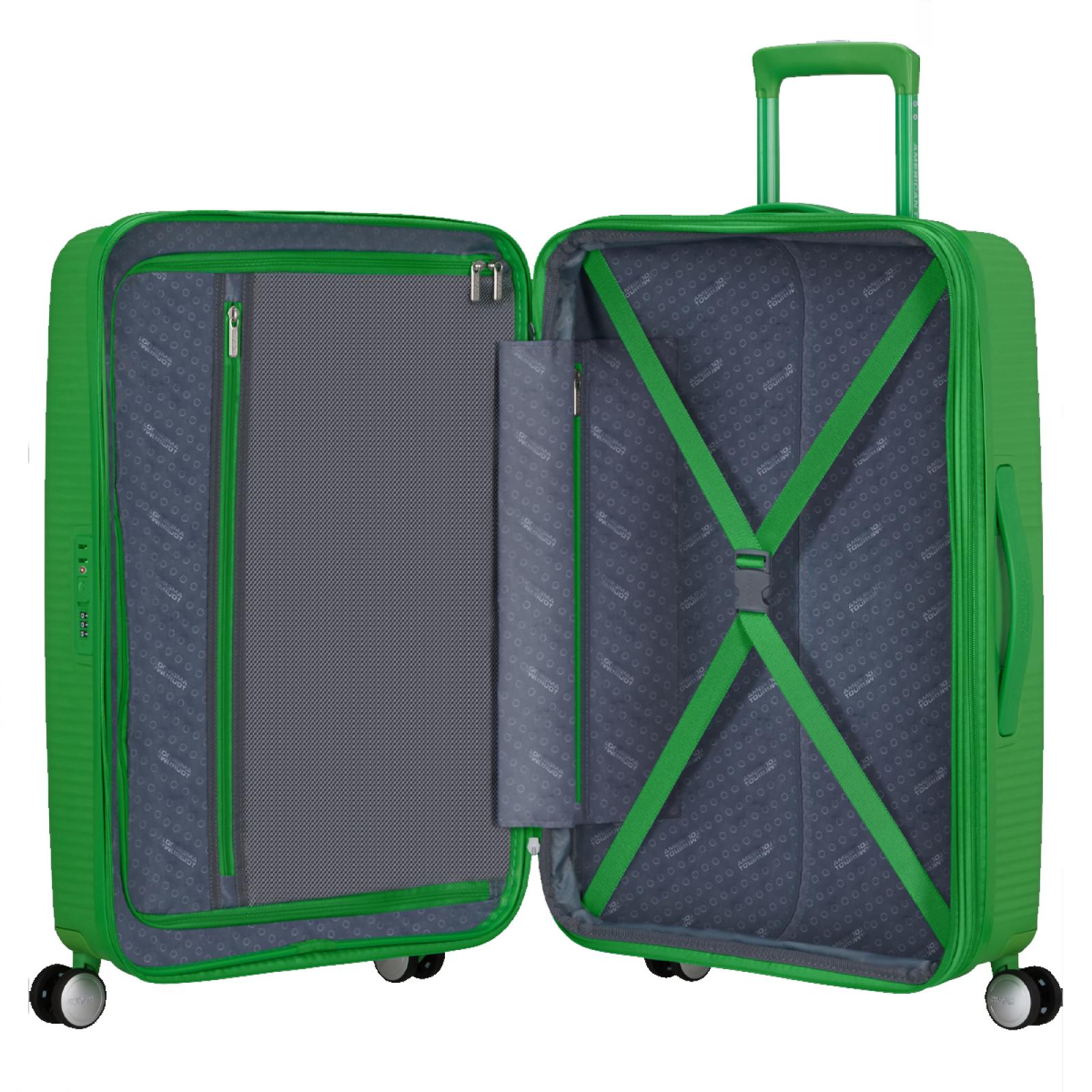 Trolley medio 67/24 con doppia cerniera esterna: una per l'apertura e l'altra per l'espansione di circa 3/5 mm. Internamente suddiviso in due vani entrambi con bretella fermaabiti e al centro zip con retina. Quattro ruote, tutte doppie per una perfetta portabilità; traino estendibile e chiusura con combinazione TSA.