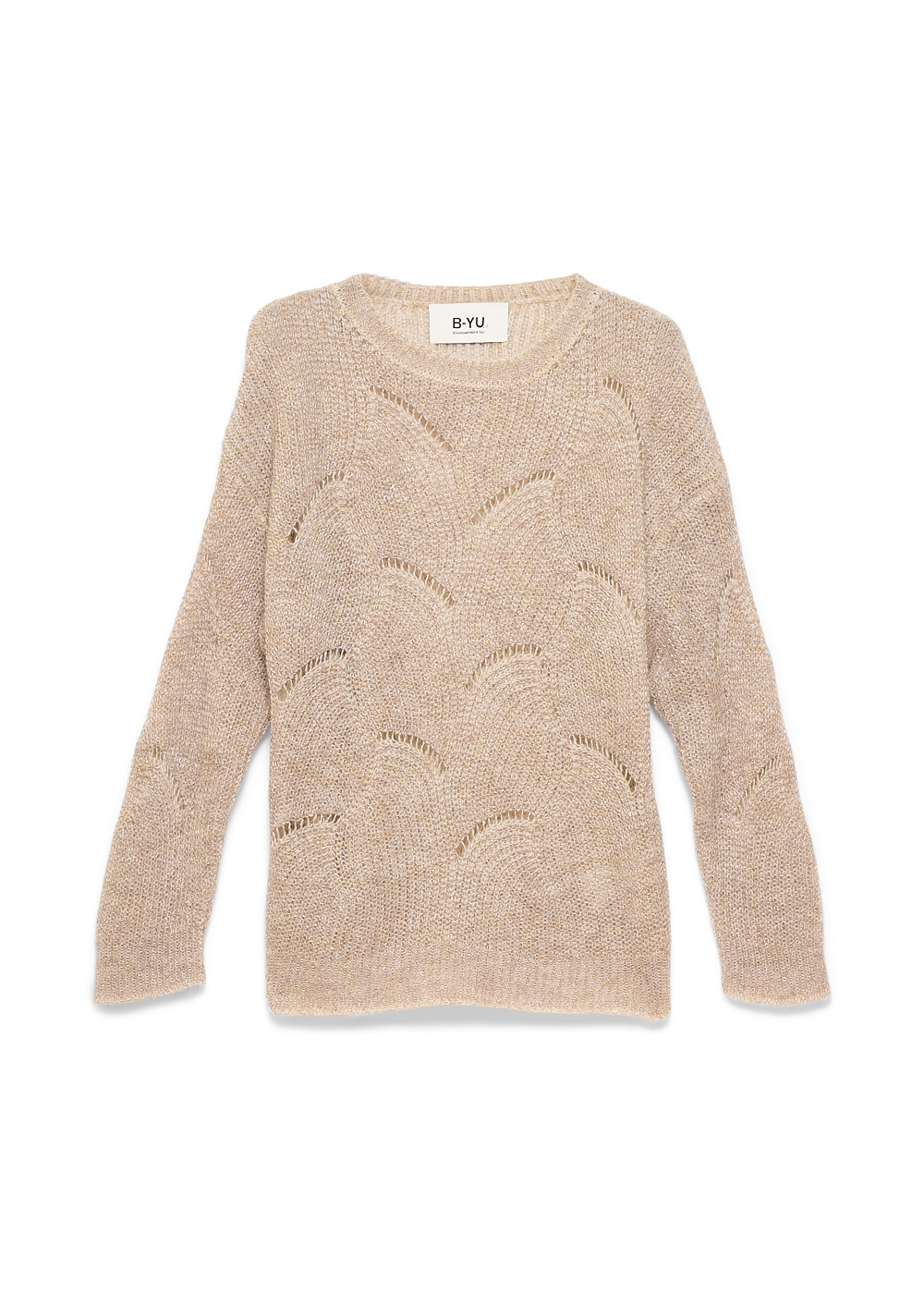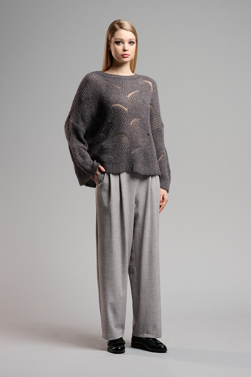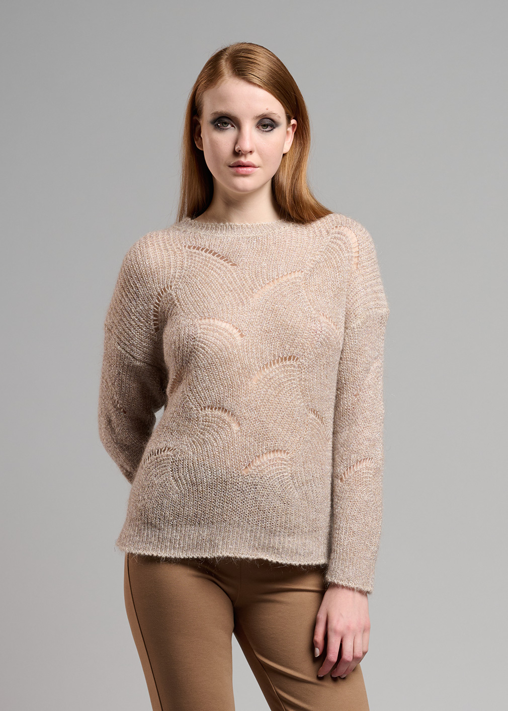 Maglioncino traforato con leggerissimi fili lurex, girocollo. Morbido, caldo e particolare renderà ogni look super raffinato. Bello sia su uno chemisier lungo sia su un denim ma super particolare anche su un panta jogging. MADE IN ITALY.