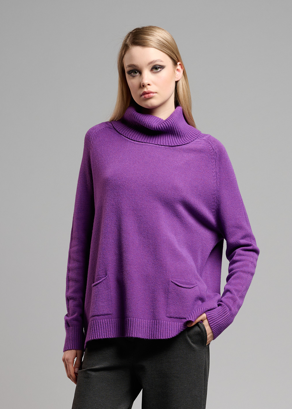 Maglioncino con collo alto morbido a costine, perfetto da abbinare con il suo pantalone jogger o con un denim. MADE IN ITALY.