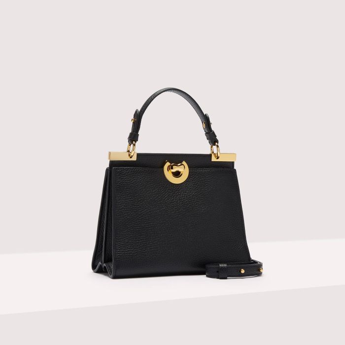 Minibag in pelle caratterizzata dalla chiusura a C e sul retro da una zip. Da indossare a mano o a spalla come crossbody grazie alla tracolla in pelle removibile e regolabile. Modello retrò che renderà ogni outfit, anche quello più casual, super ricercato.