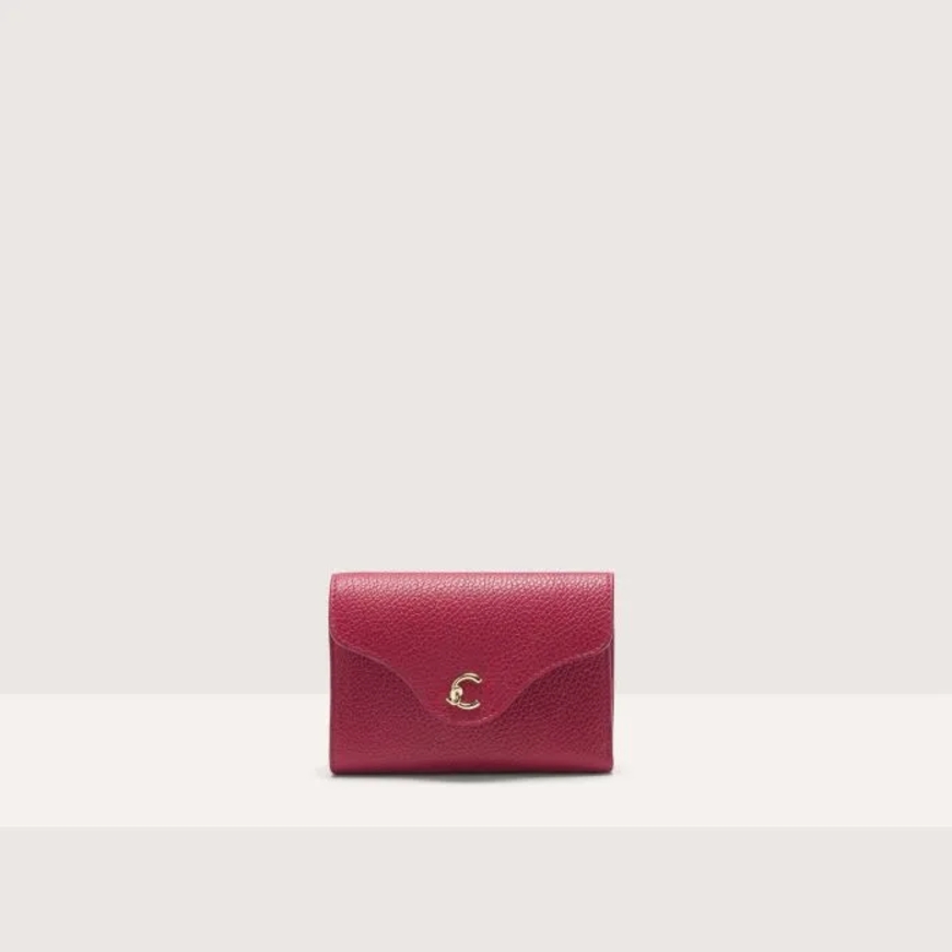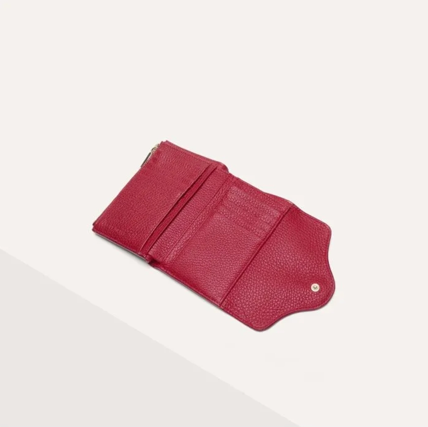 Portafoglio in pelle dalle dimensioni medie perfetto sia per le minibag grazie allo spessore piuttosto minimal che alle borse classiche. Chiuso con la pattina ed il bottone centrale interno calamitato con la C gioiello sul davanti. Internamente soffietto per le banconote, slot per le carte di credito e sul lato zip per le monete.