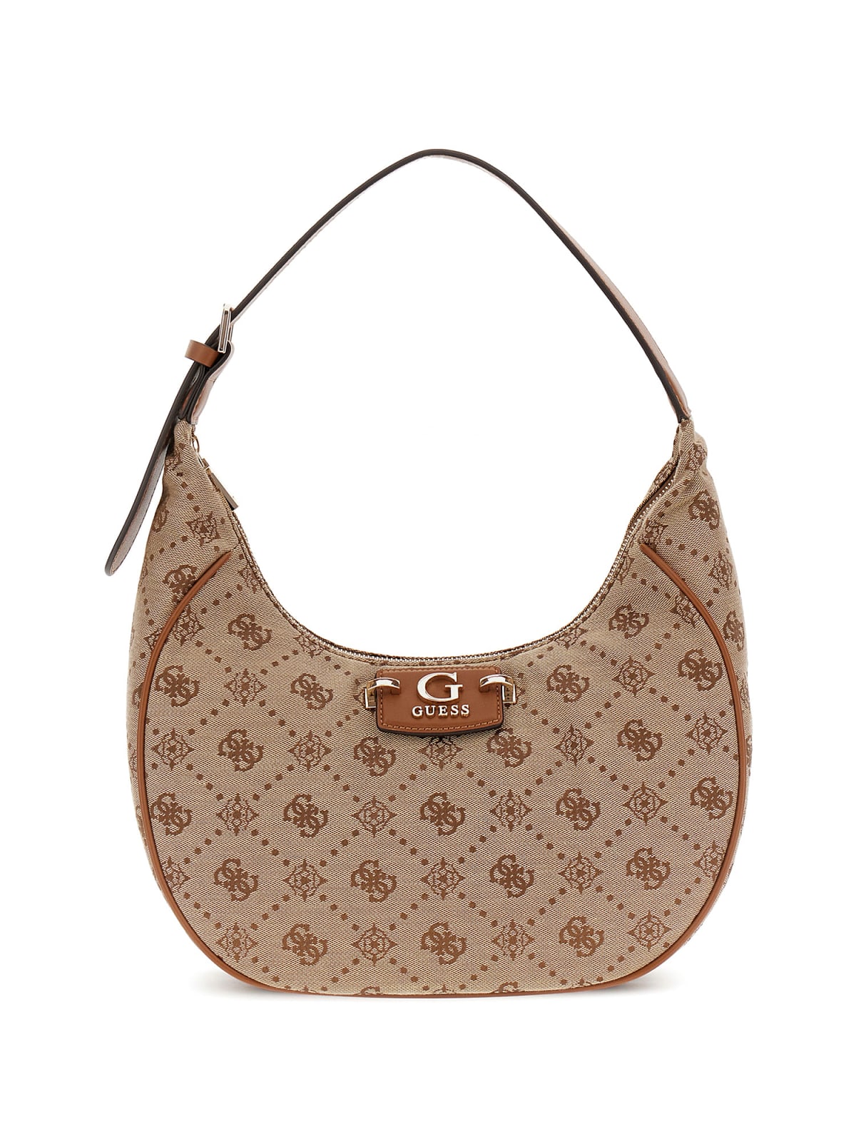 Borsa in ecopelle, modello hobo bag in tessuto con micro logo all over a contrasto di colore. Chiusa da cerniera siperiore, internamente zip e taschini. Da indossare a spalla per un outfit comodo, giornaliero e mai banale.