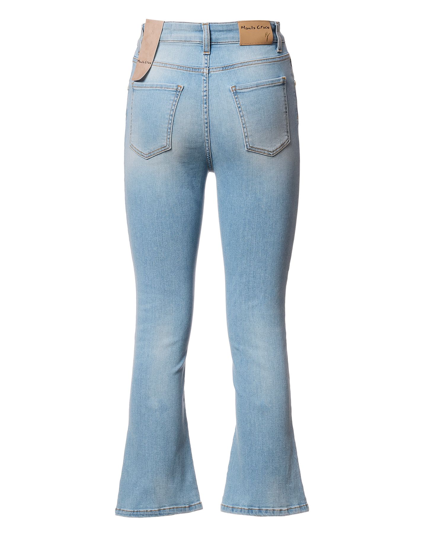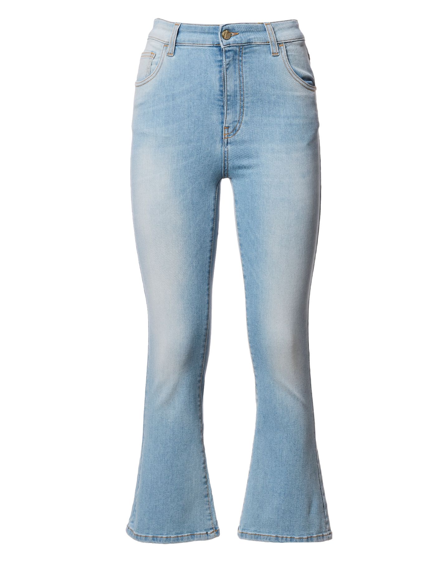 Jeans a vita medio/alta, cinque tasche chiuso con zip e bottone. Di gran moda il finale a trombetta (arriva circa alla caviglia) che conferisce slancio alla gamba anche con una sneakers. Lavaggio chiaro. Leggero e confortevole non solo al tatto ma anche e soprattutto nella vestibilità.