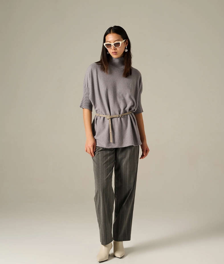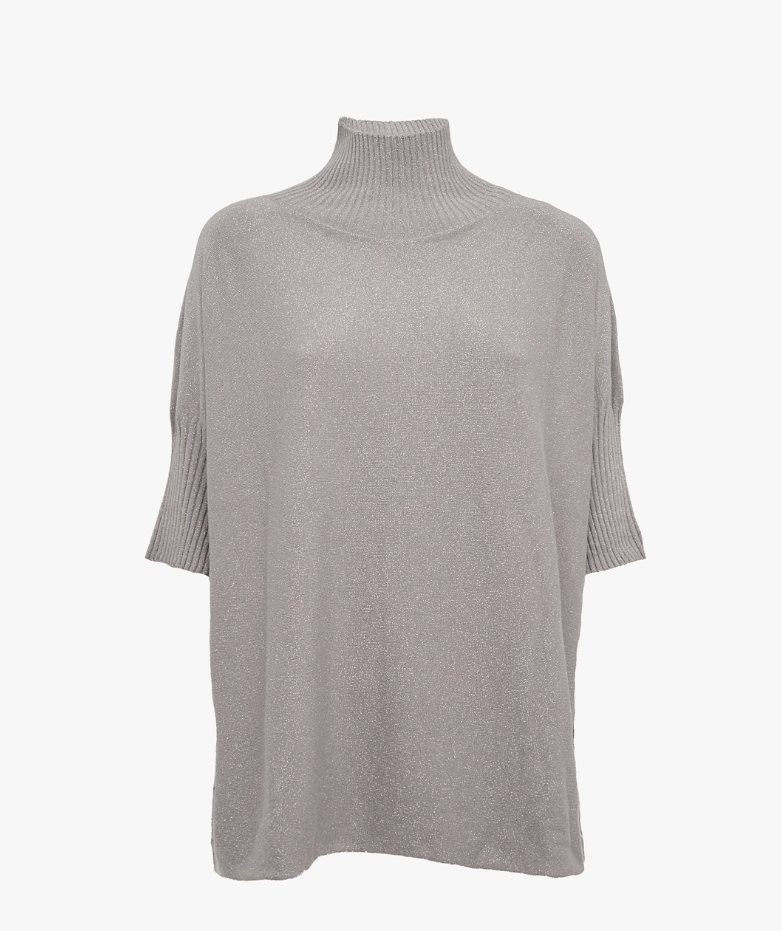 Maglia con collo alto e manica 3/4 dal fit morbido e regolare. Leggermente lurex si adatta facilmente sia ad un outfit casual con un denim oppure con un pantalone dal taglio tailleur.