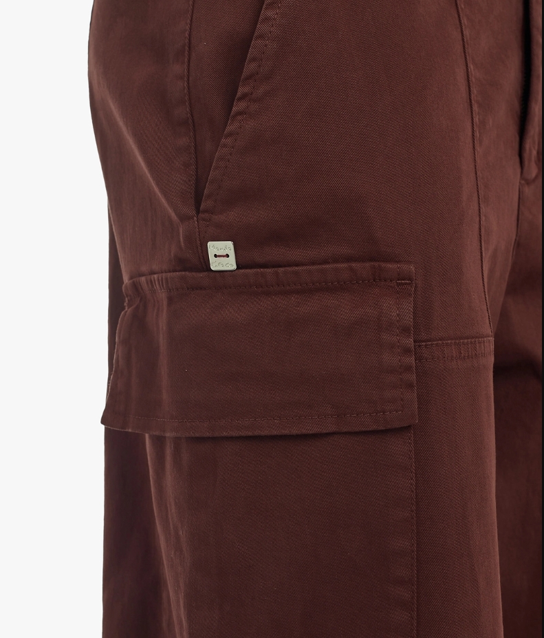 Pantalone cargo, con tasche all'americana e tasconi sui lati. Chiuso con cerniera e bottone. Perfetto per una donna dinamica e grintosa. Super casual e dal fit regolare.