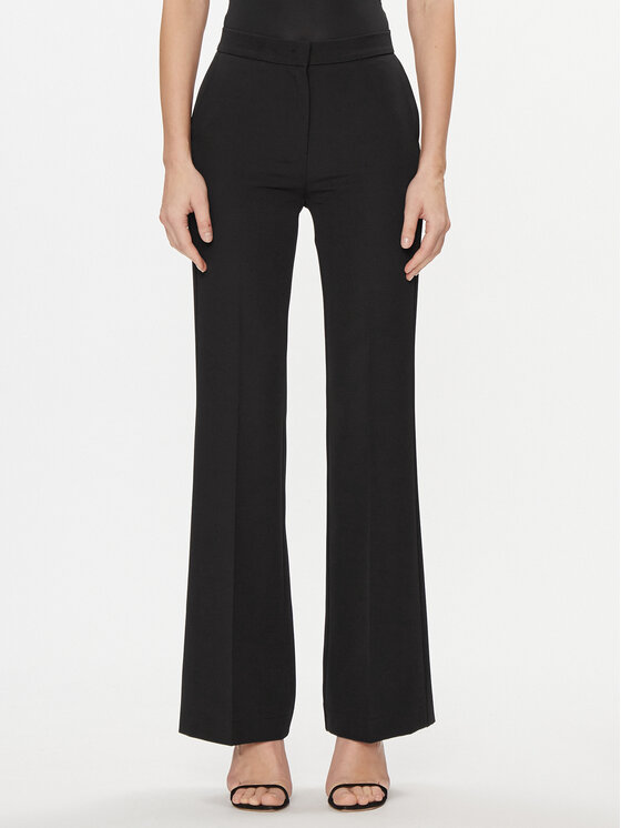 Pantalone con vestibilità regolare leggermente a zampa sul finale. Modello giovanile di pantalone tailleur da indossare con il blazer doppiopetto abbinato.