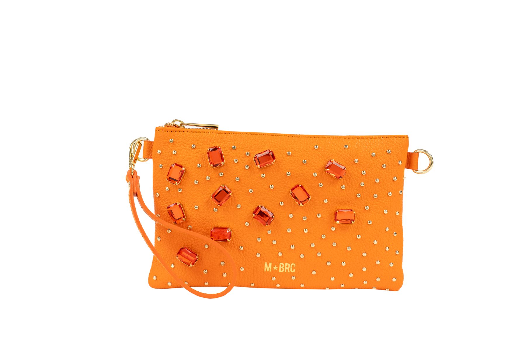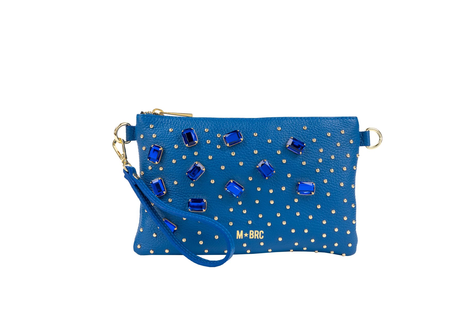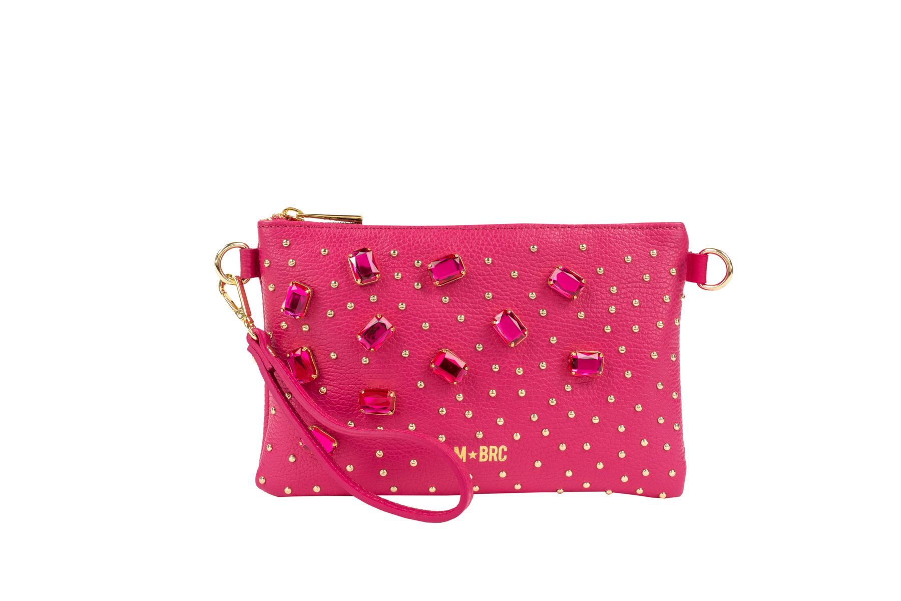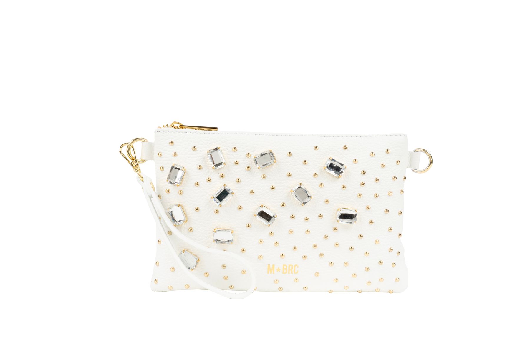 Pochette in pelle e strass applicati. Chiusa con cerniera superiore può essere indossata a mano grazie alla comoda possieda con moschettone removibile oppure come crossbody grazie alla catenina. Perfetta per le cerimonie o per un look super ricercato.