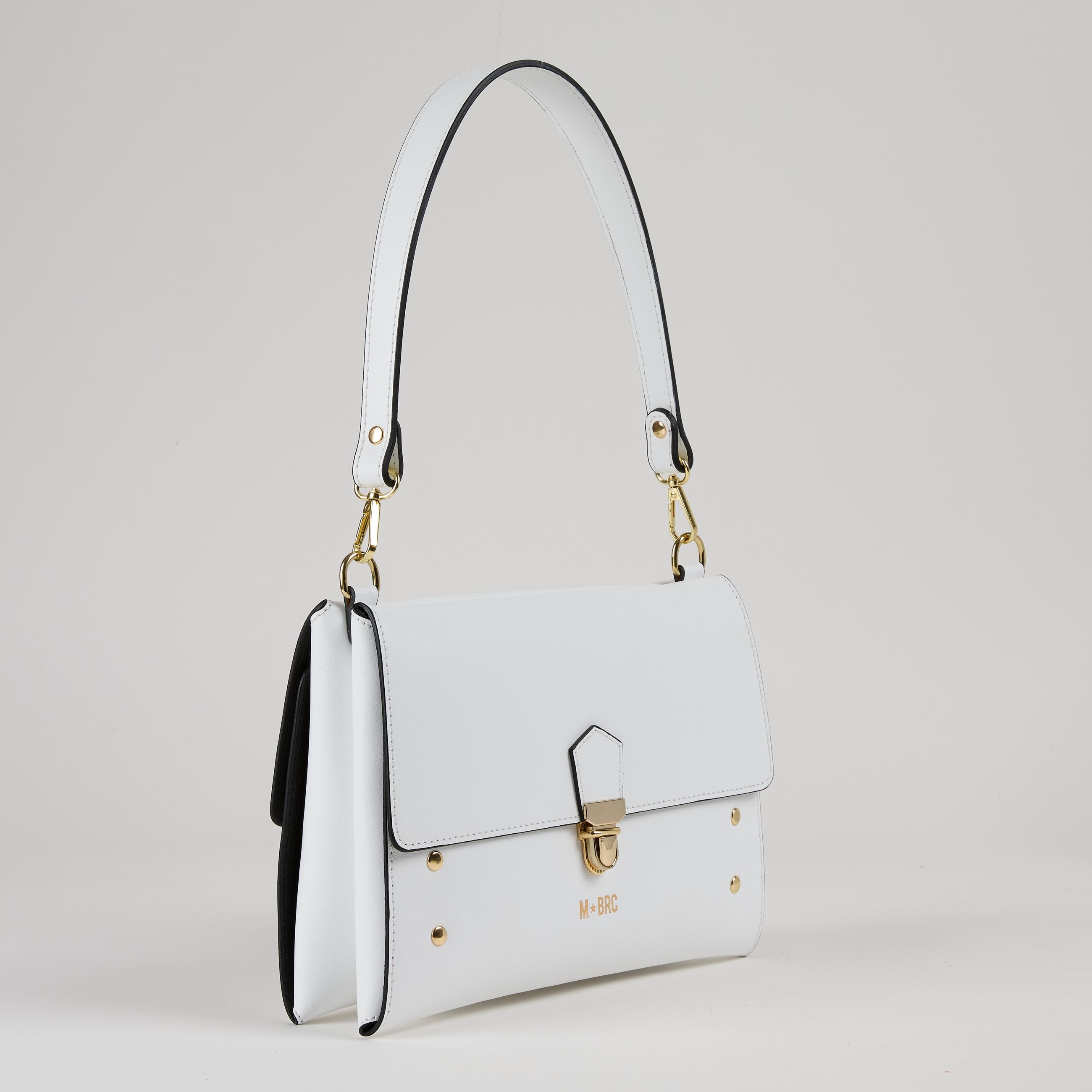 Borsa in pelle, modello baguette con apertura da entrambi i lati chiusa con clip. Da indossare a spalla grazie alla tracolla. Modello super nuovo e giusto per un look casual chic.