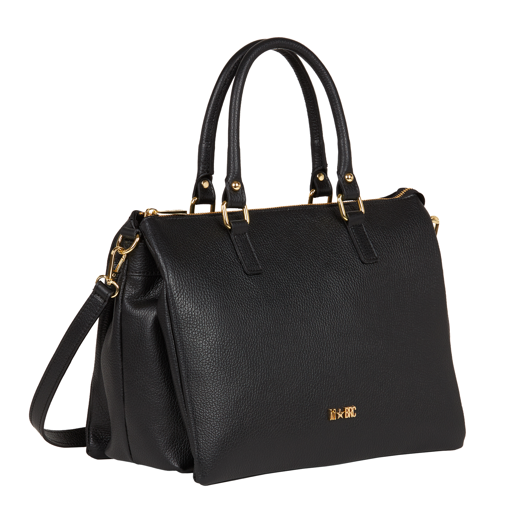 Borsa in pelle, modello bauletto di dimensioni medie chiuso con cerniera. Internamente suddivisa in tre scomparti di cui il centrale con zip. Da indossare a mano o con la tracolla lunga regolabile.