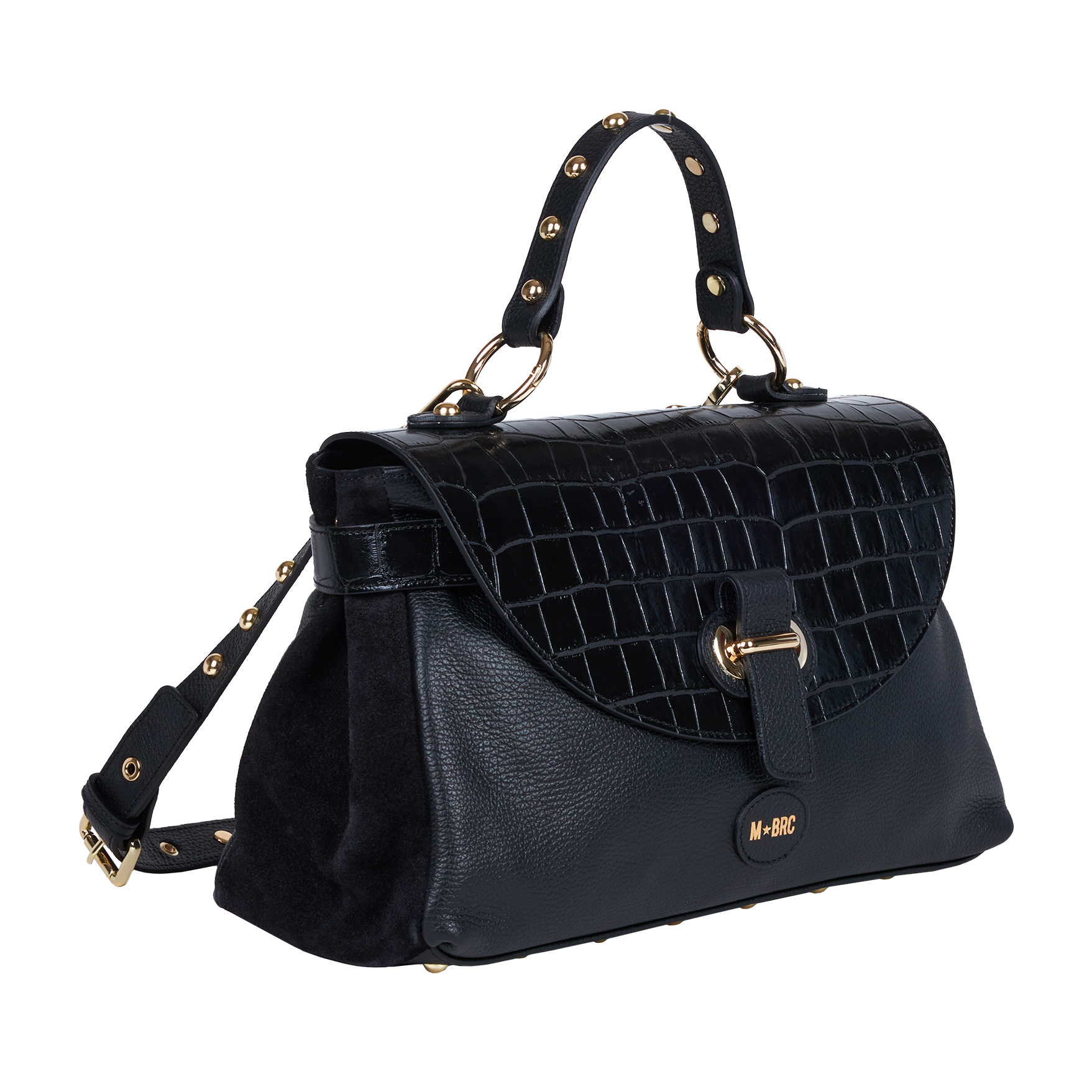 Borsa in pelle, modello iconico a tracolla chiusa con la patta e bottone interno calamitato. Belle le rifiniture in pelle in diversi materiali che creano un effetto pachwork. Da indossare a spalla o a mano.