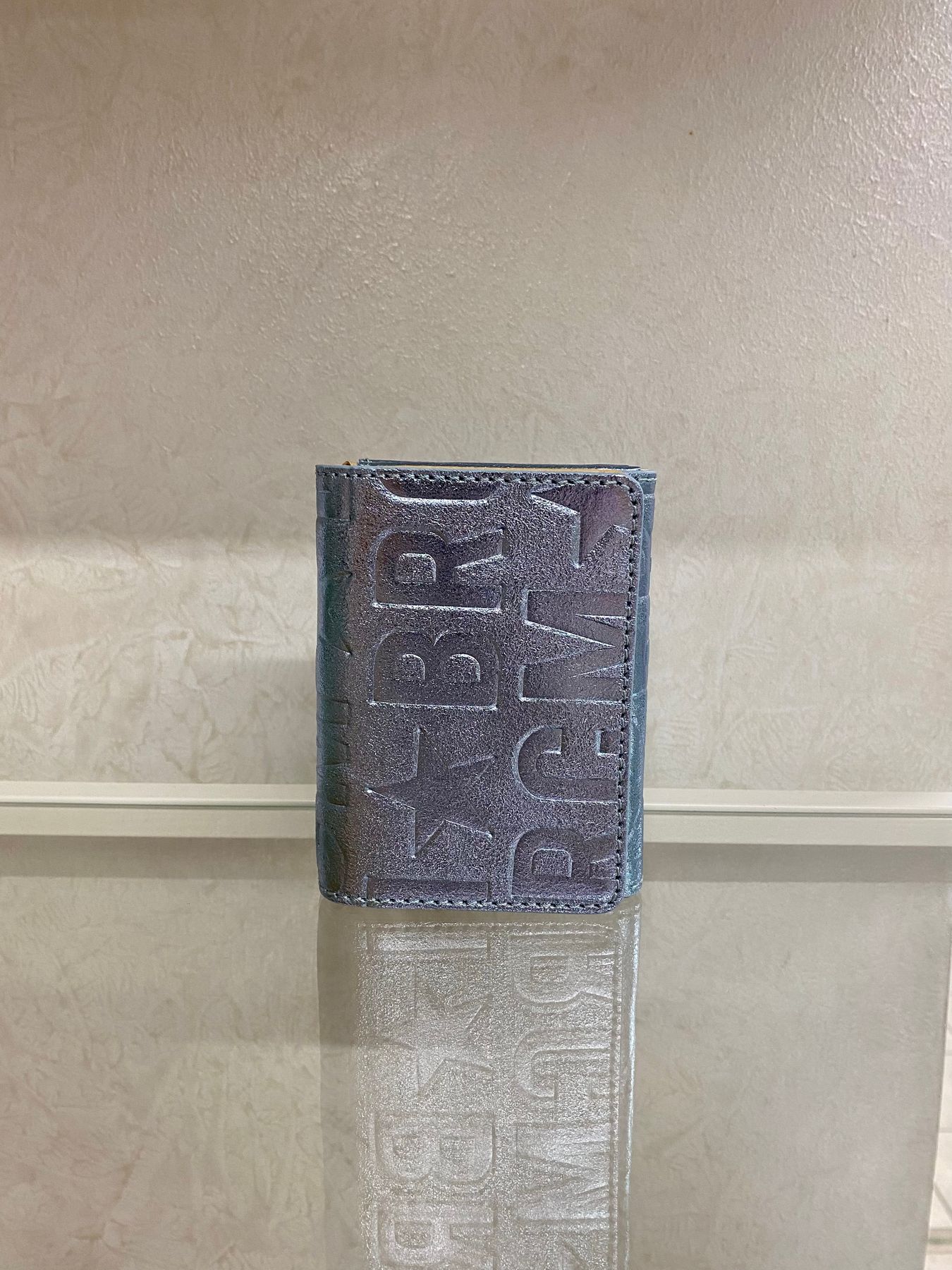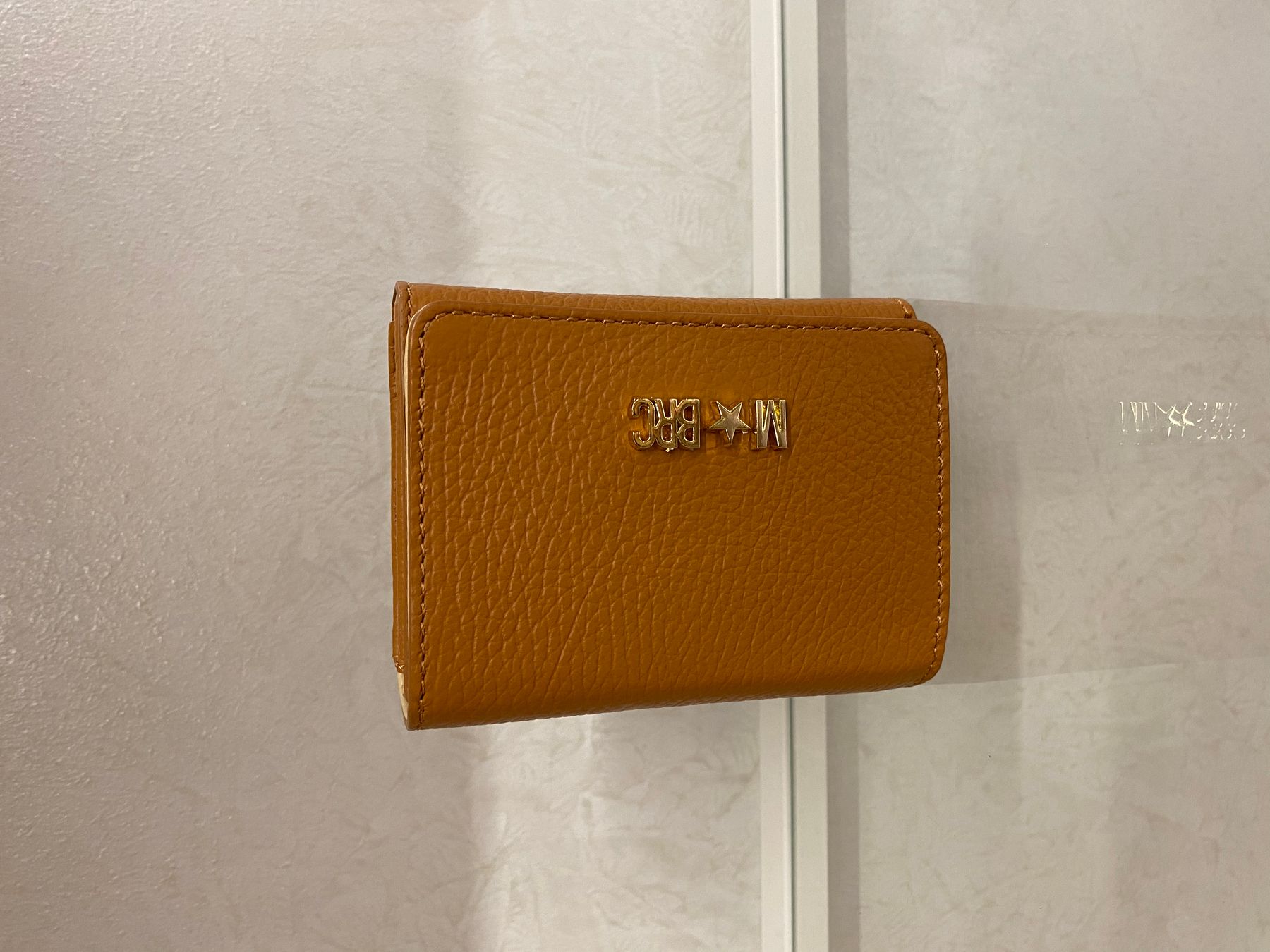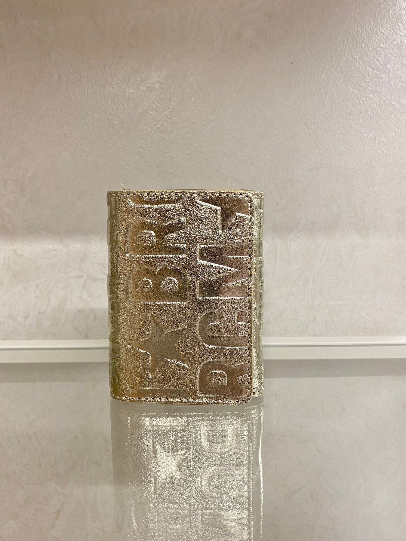 Portafoglio mini in pelle chiuso con bottone interno calamitato e logo metallico esterno. Internamente tre soffietti di cui quello centrale chiuso con cerniera per le monete mentre i laterali per le banconote (piegate) e le carte di credito negli appositi slot. Perfetto per le pochette o minibag.