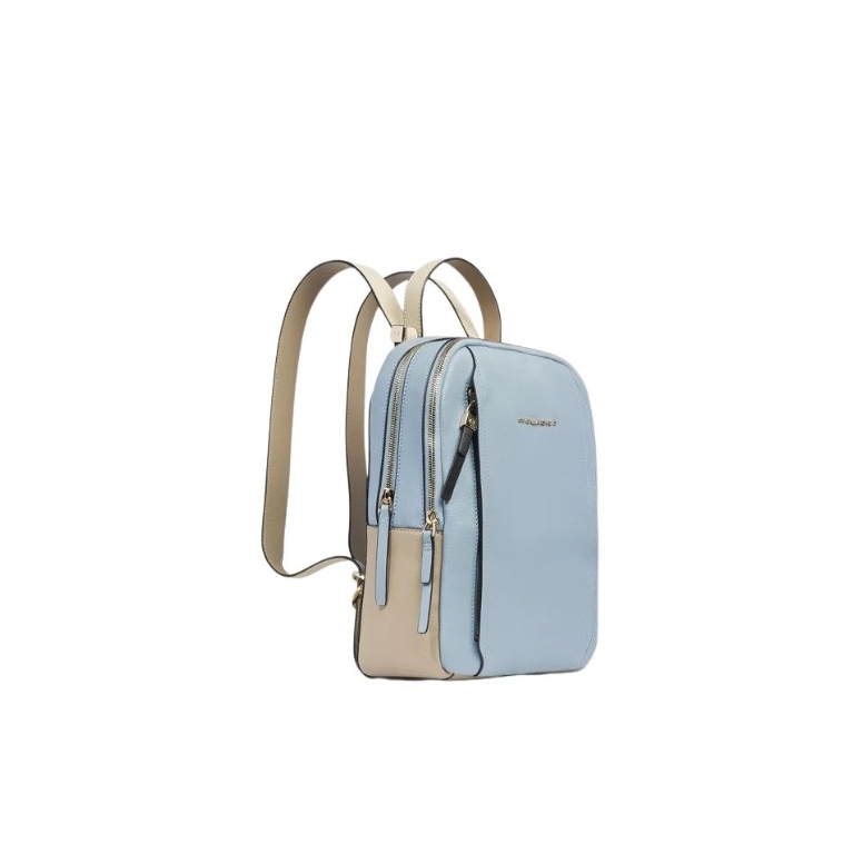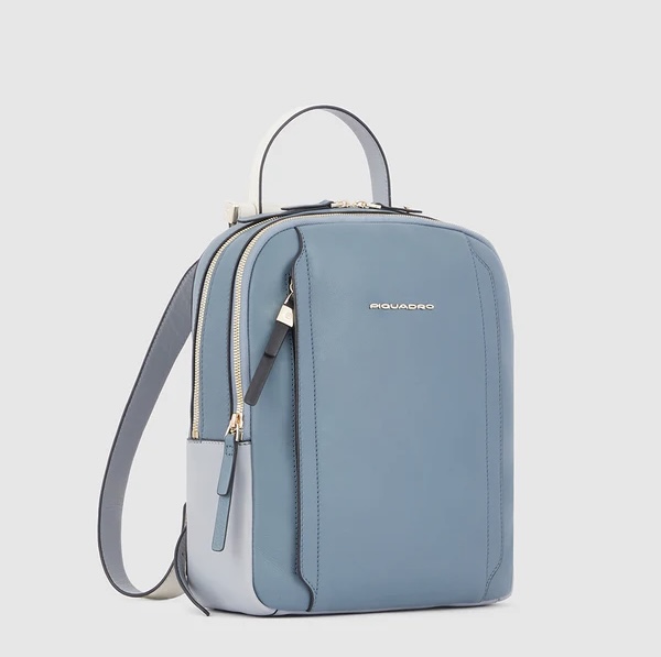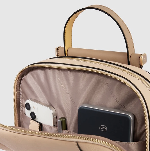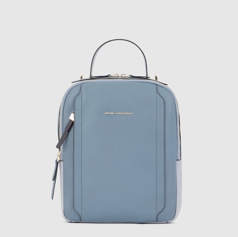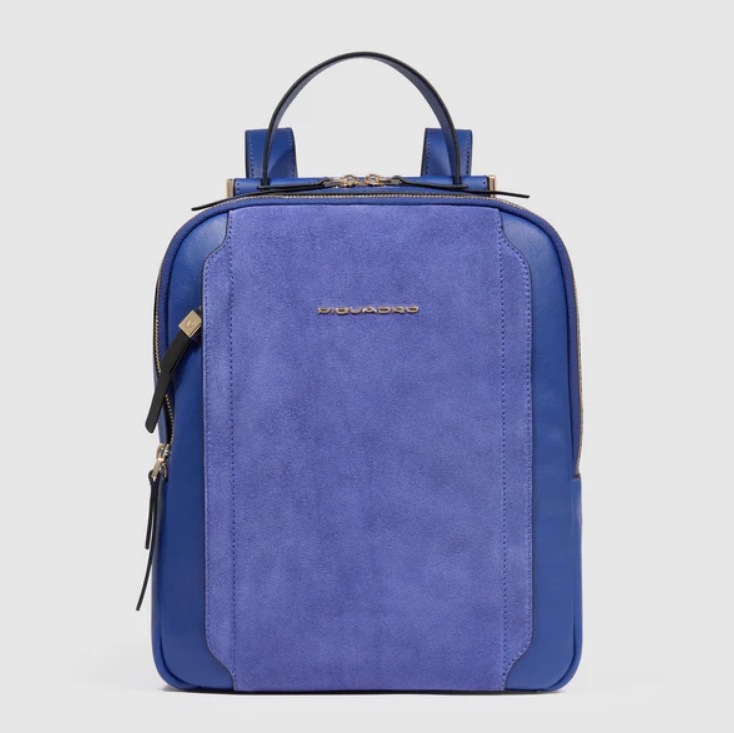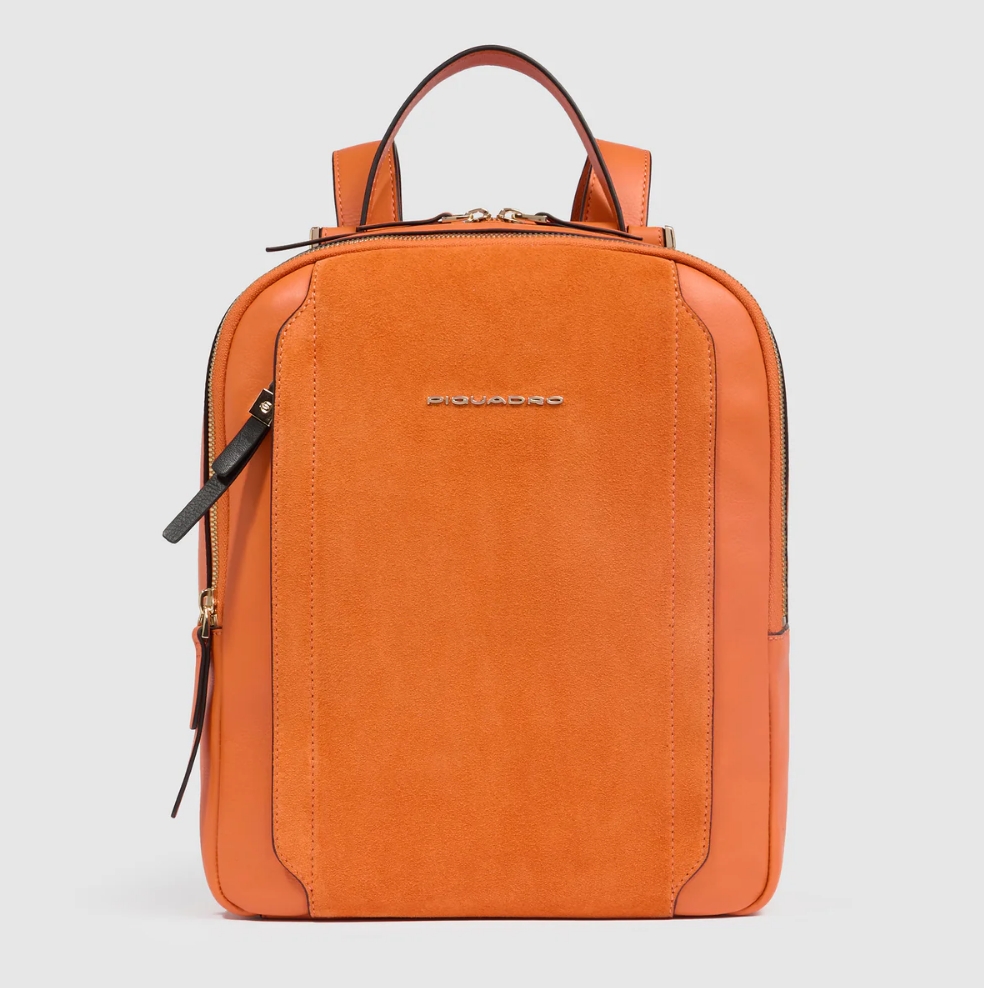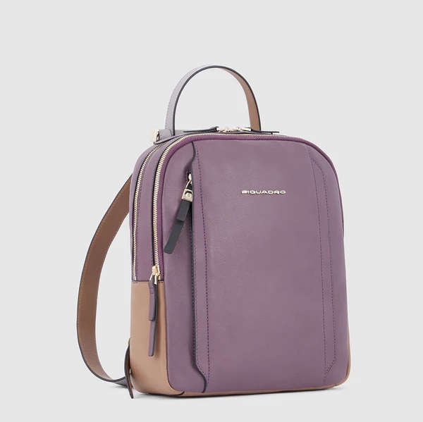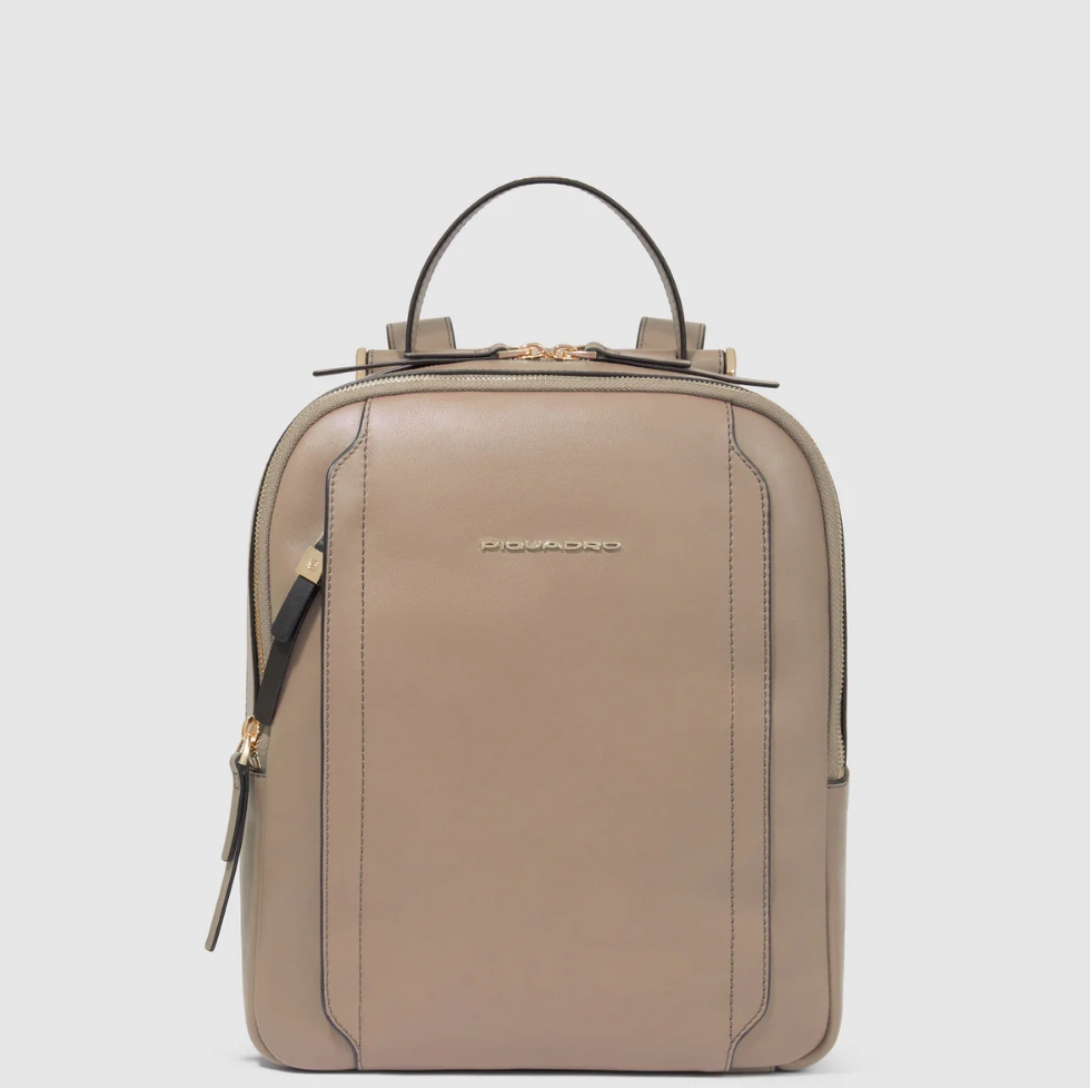 Zainetto in pelle porta iPad e Pc 12,9”. Suddiviso in due scomparti chiusi da zip, internamente organizzato con vari taschini e zip. Cerniera esterna comoda per gli oggetti a portata di mano, tracolle regolabili e fascia posteriore per agganciarlo al trolley. Comodissimo per il viaggio e il tempo libero.