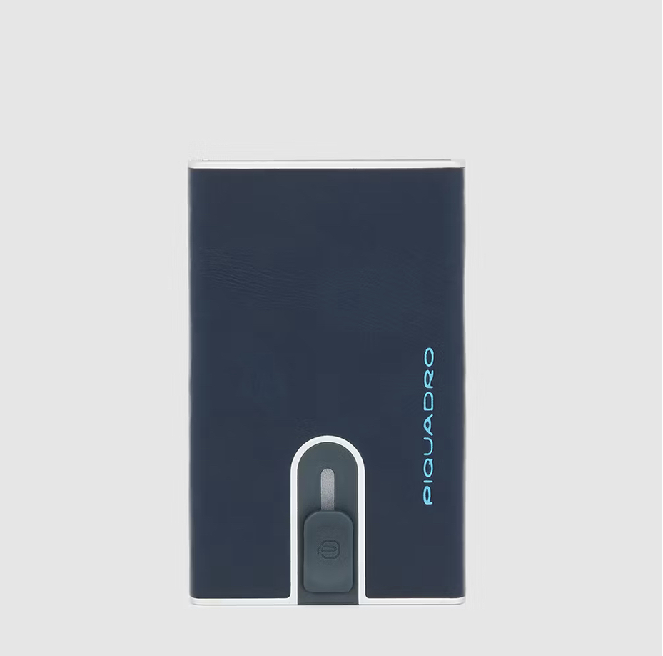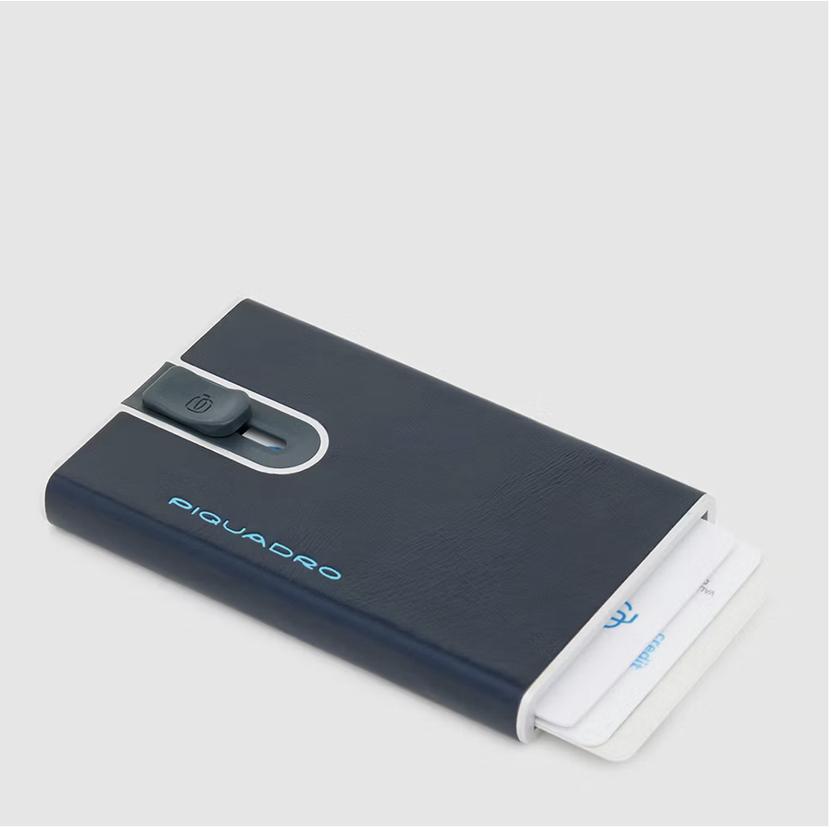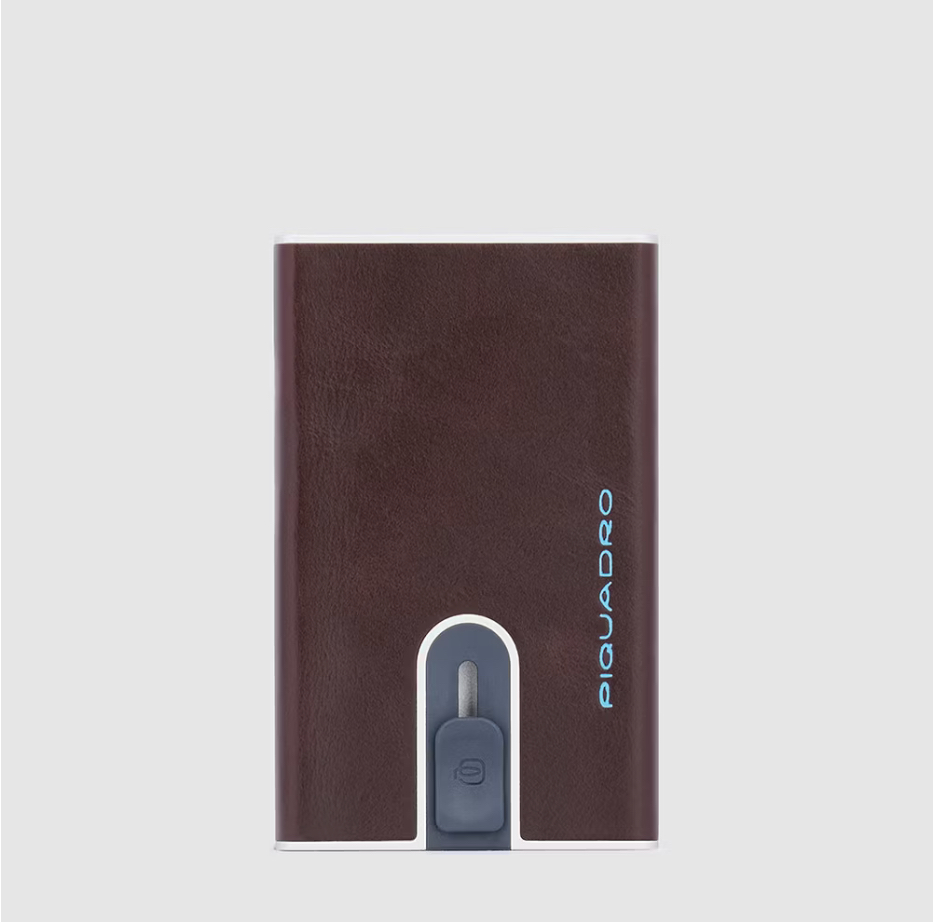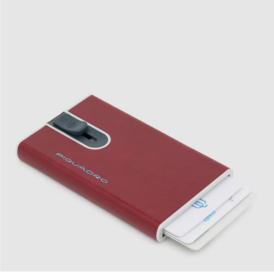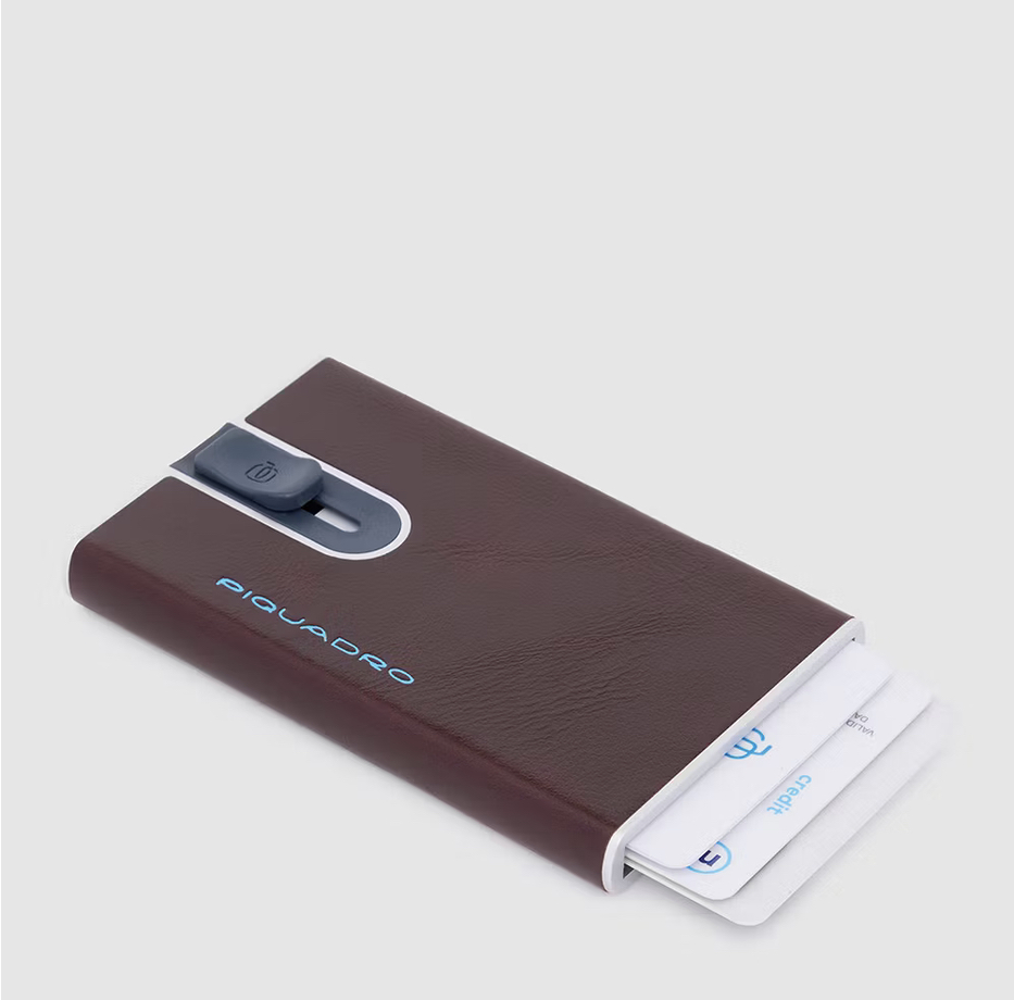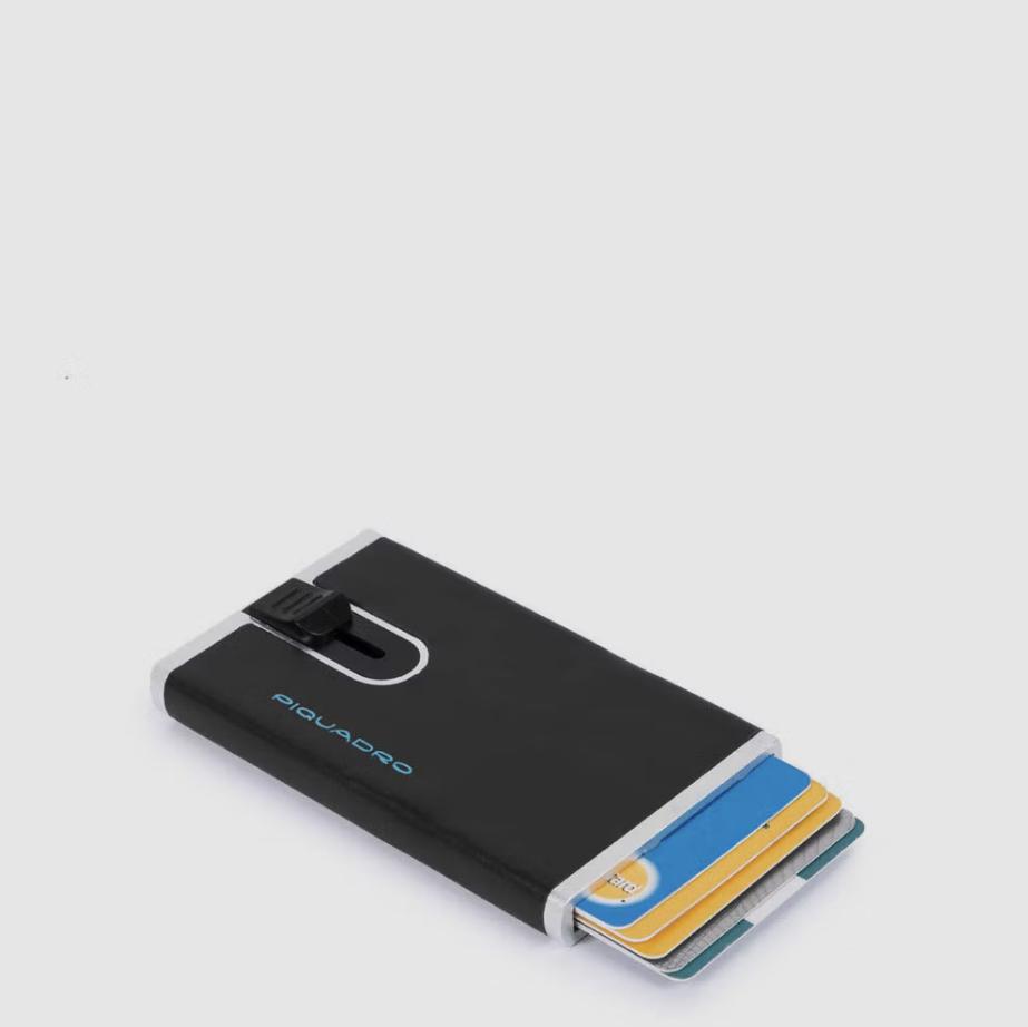 Portacarte CompactWallet in pelle con slinding system. Protezione RFID. Entrano verticalmente n.5 carte di credito con rilievo, n.6 senza.