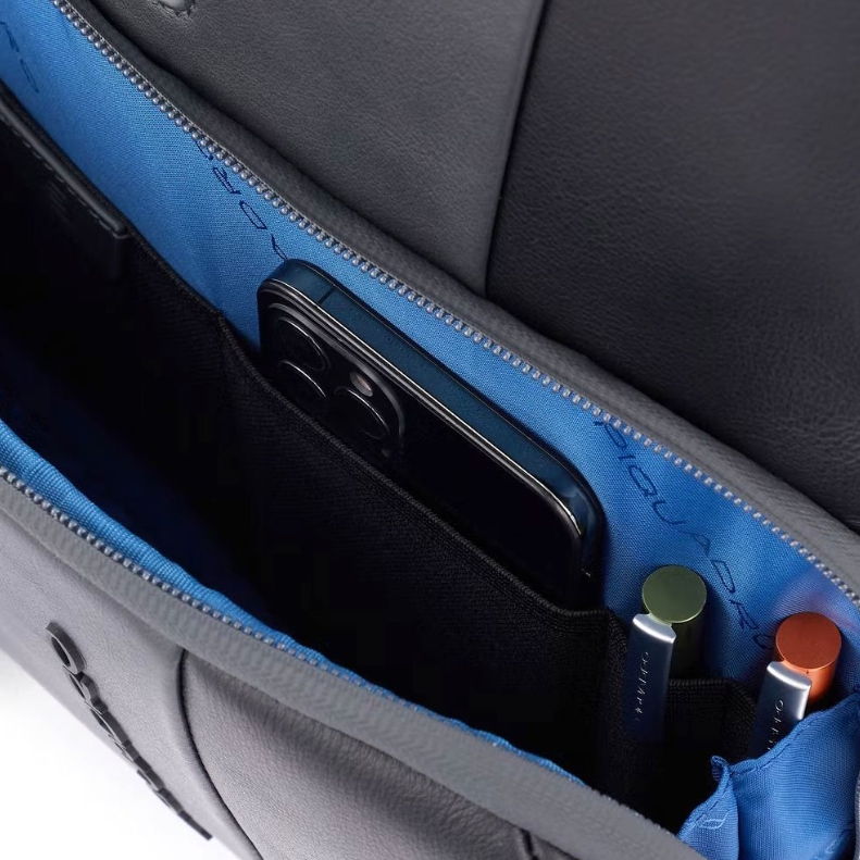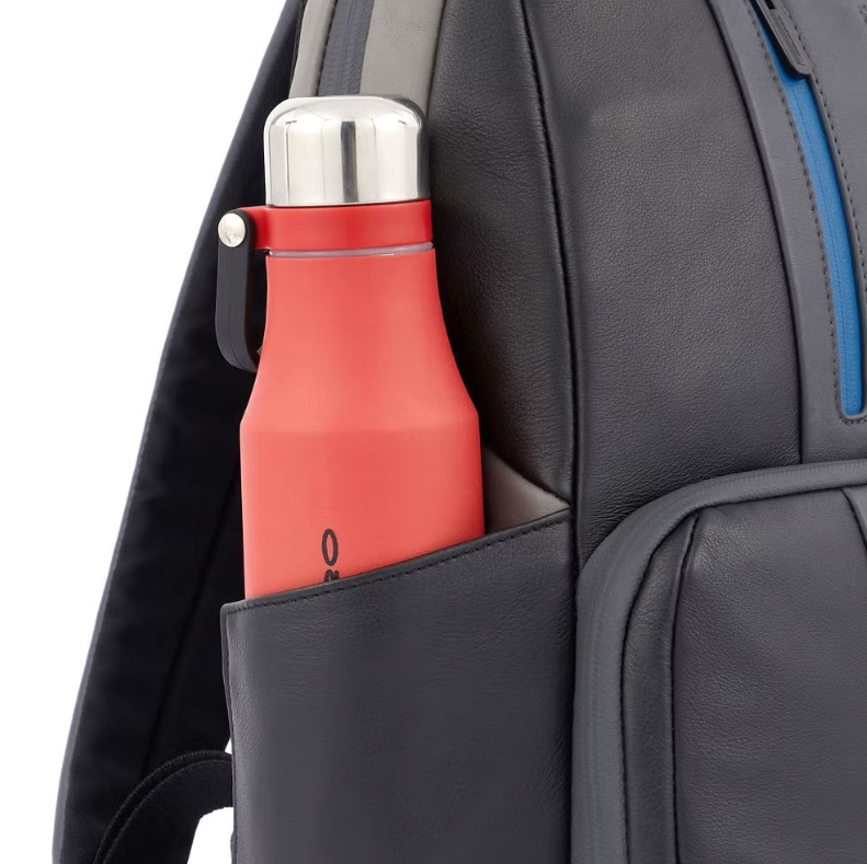 Zaino in pelle con porta pc 14"; comodi spallacci imbottiti e sui lati tasca porta bottiglia o ombrello. Internamente organizzato con scomparti per riporre al meglio gli oggetti business (pc, tablet, penne, ecc..)