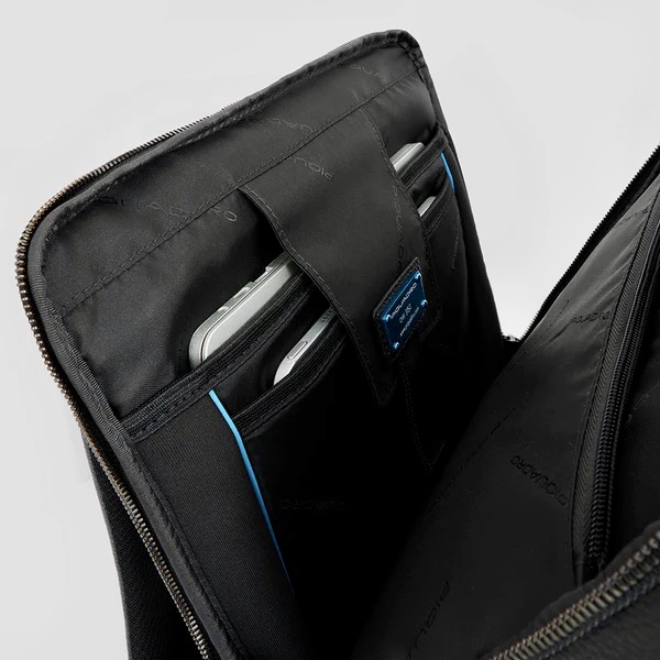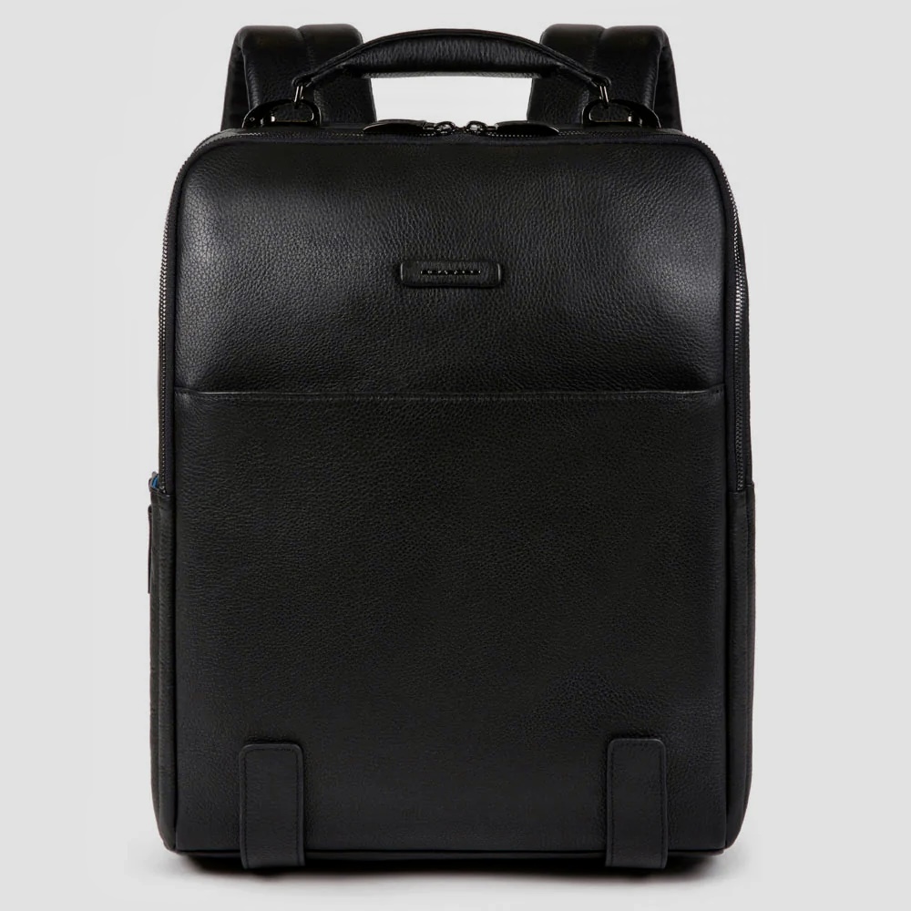 Zaino in pelle con doppi scomparti chiusi da cerniere, internamente vano porta pc 15.6", porta ipad, cellulare, penne e tutti gli accessori per il work. Sul fondo ganci in pelle chiusi da bottoni per riporre o l'ombrello lungo o una giacca piegata (utile quando per esempio è bagnata di pioggia). Lateralmente tasca con zip utile per la borraccia o per l'ombrello. Schienale imbottito e spallacci regolabili.