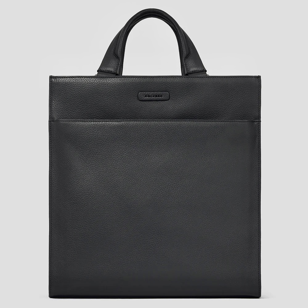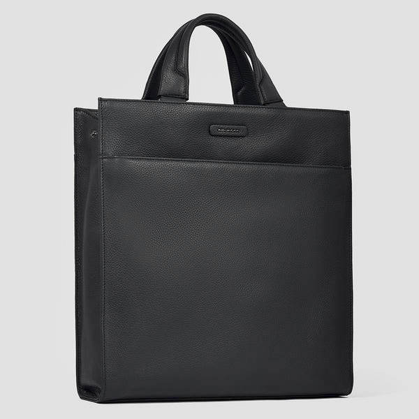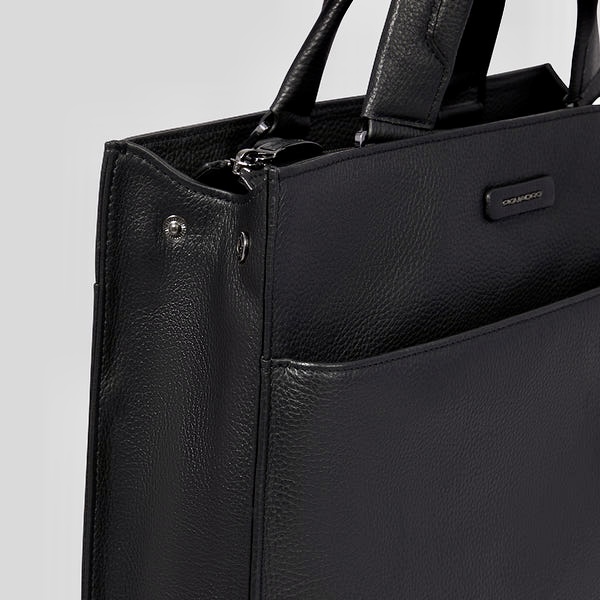 Cartella in pelle porta pc da 13.3". Bello ed innovativo il design verticale così da dare slancio e femminilità ad un accessorio per il lavoro. Da indossare a mano o a spalla grazie alla tracolla, è chiusa con la cerniera. Internamente vani imbottiti per il notebook e gli accessori work e personali; leggermente espandibile grazie ai due bottoni laterali, ha la classica fascia posteriore per essere inserita nel traino trolley.