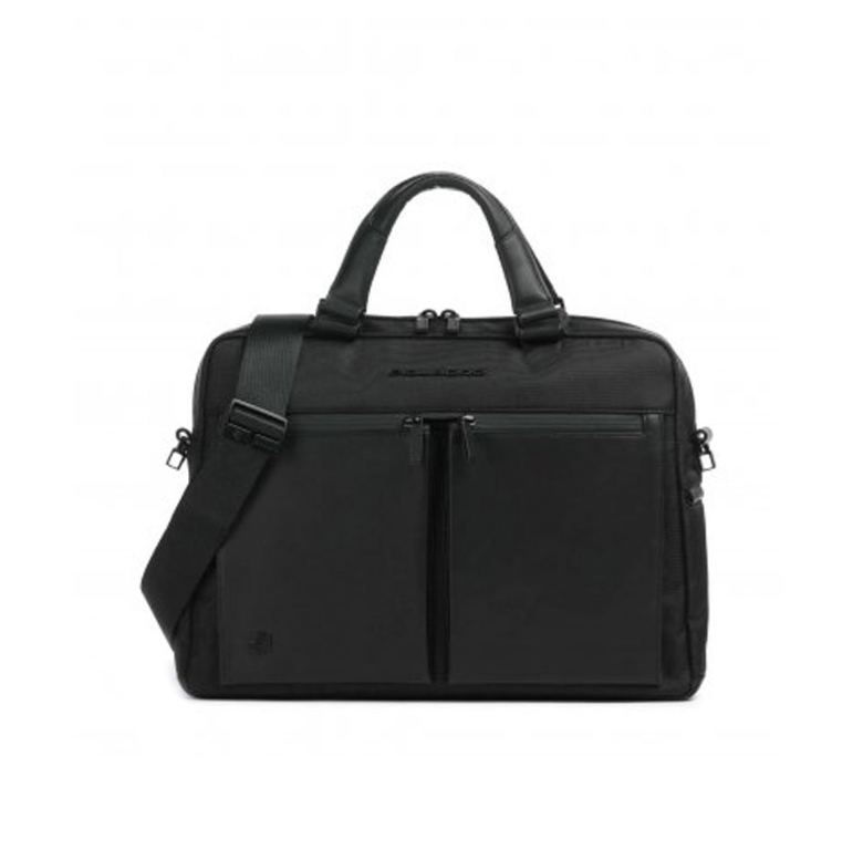 Cartella in tessuto porta pc da 14" chiusa con cerniera. Internamente vari scomparti porta computer, tablet e tutti gli accessori work. Comode le due tasche sul davanti in pelle chiuse con zip. Da indossare a mano grazie ai comodi manici oppure a spalla inserendo la tracolla in tessuto.