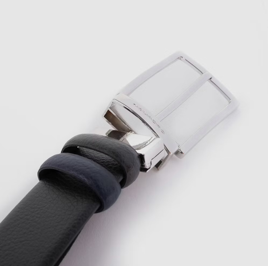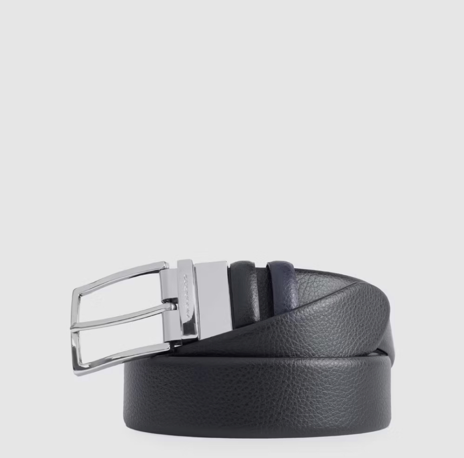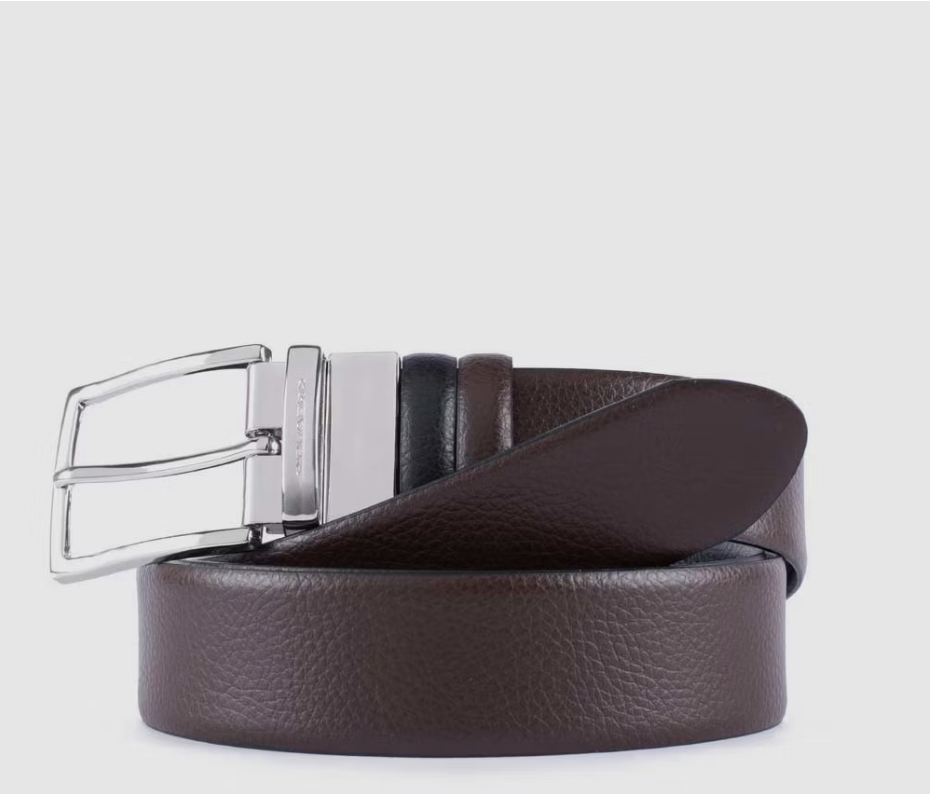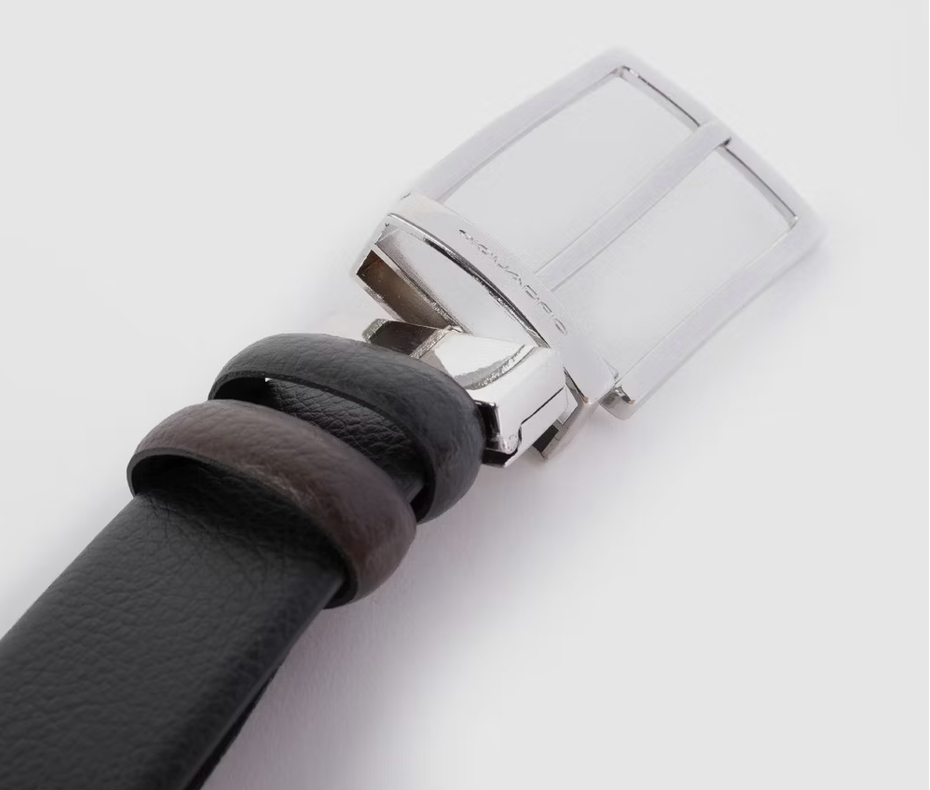 Cintura in pelle bicolore. È reversibile grazie alla fibbia girevole. Perfetta per un outfit casual ma al tempo stesso raffinato.
