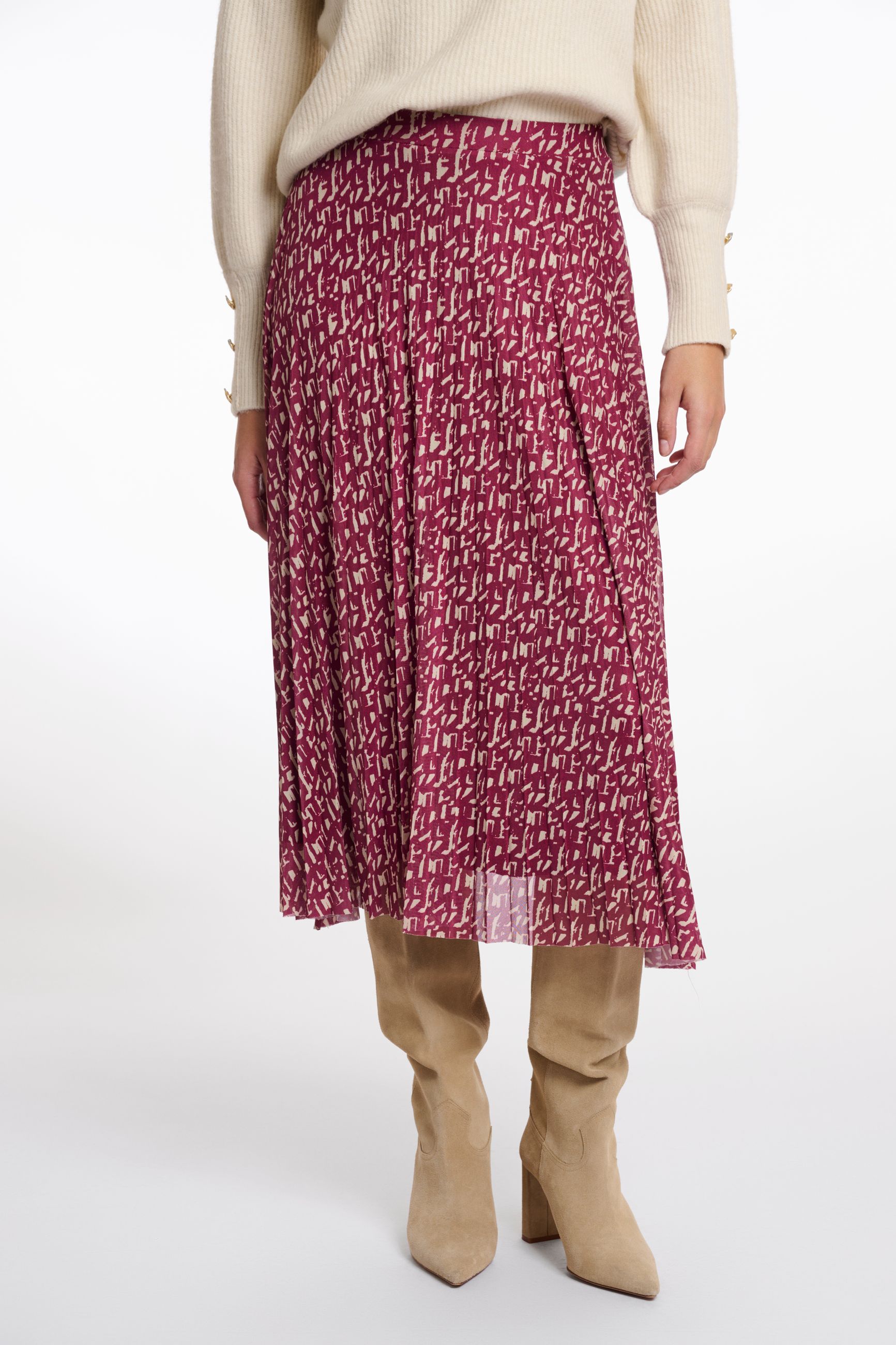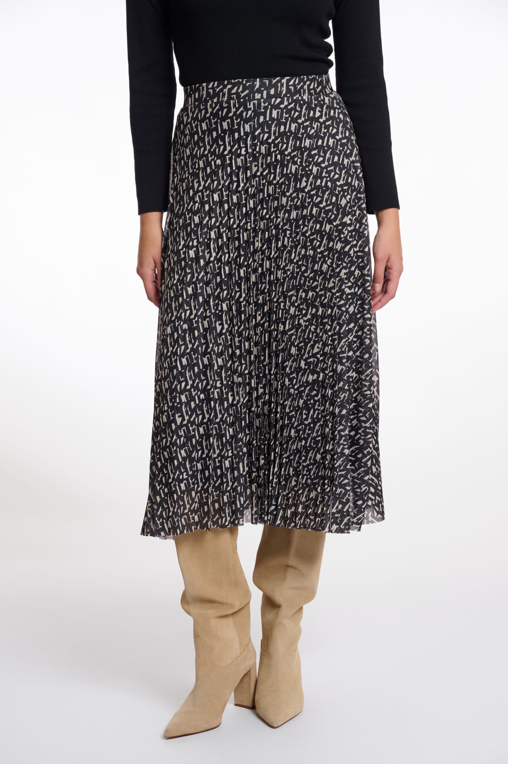 Gonna midi con motivo a contrasto di colore, elastico in vita e dal voulant leggero. Bella sia per un look elegante, magari con un decoltè ma perfetta anche per tutti i giorni con un biker di pelle.