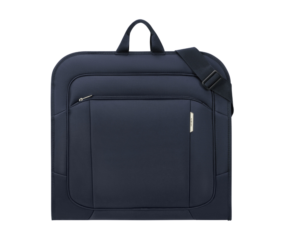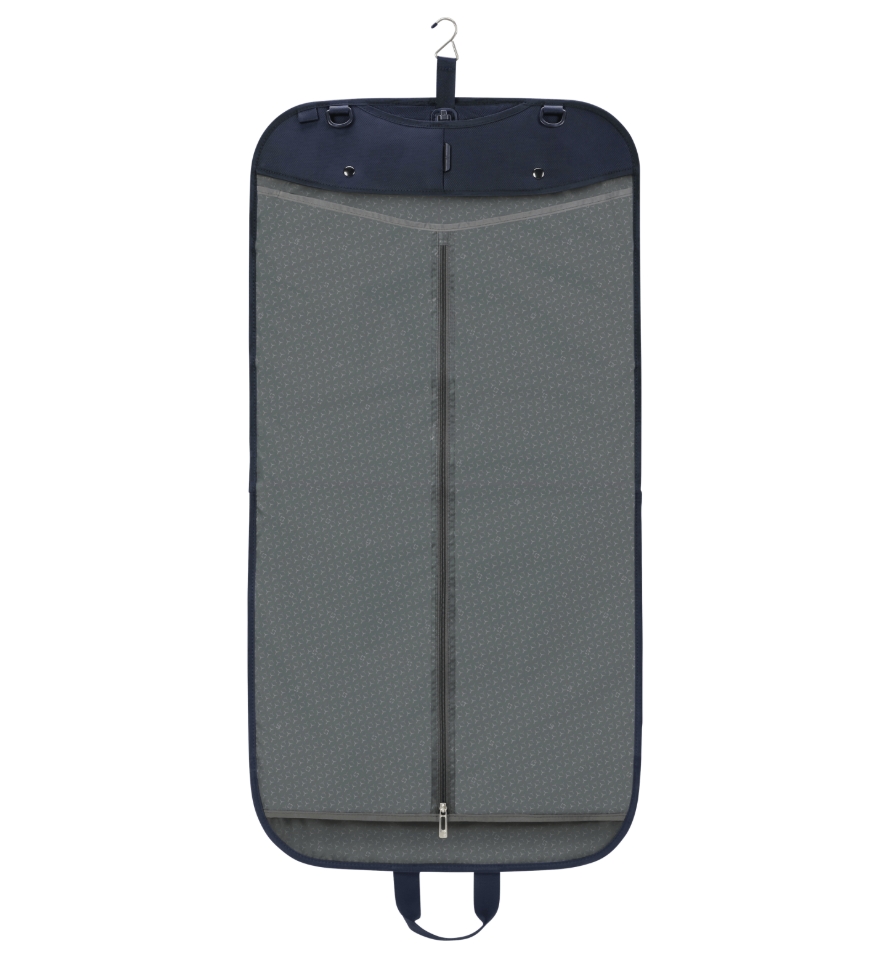 Porta abiti in tessuto leggerissimo. Chiuso da cerniera lungo tutto il perimetro, gancio stampella e tracolla regolabile e removibile.