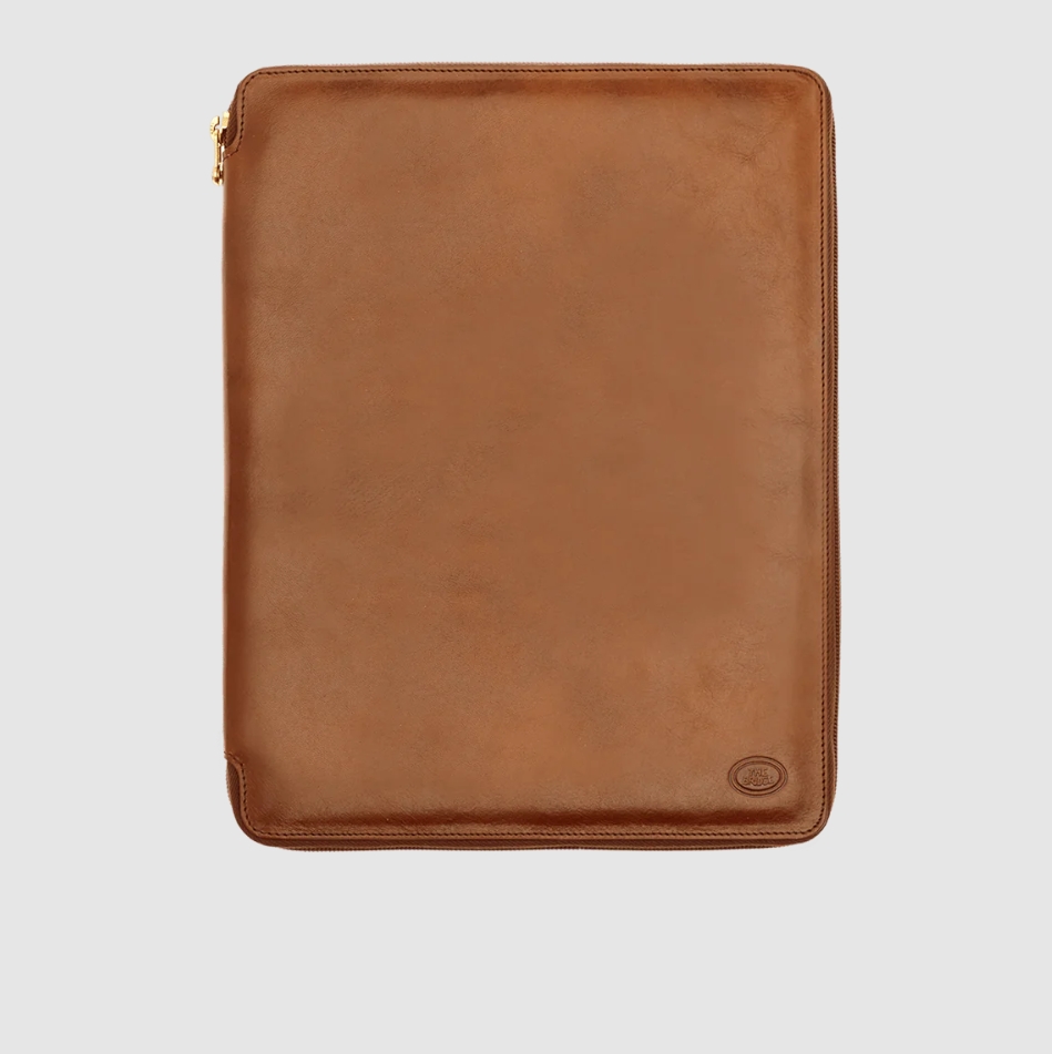 Porta blocco - organizer interamente in cuoio e chiuso da cerniera. Internamente contiene un blocco per gli appunti firmato The Bridge interscambiabile, e vari soffietti per gli accessori work come biglietti da visita, smartphone ecc. Al centro soffietto porta penne. Comodo da portare con se oppure da lasciare aperto sulla scrivania. Raffinato ed elegante.