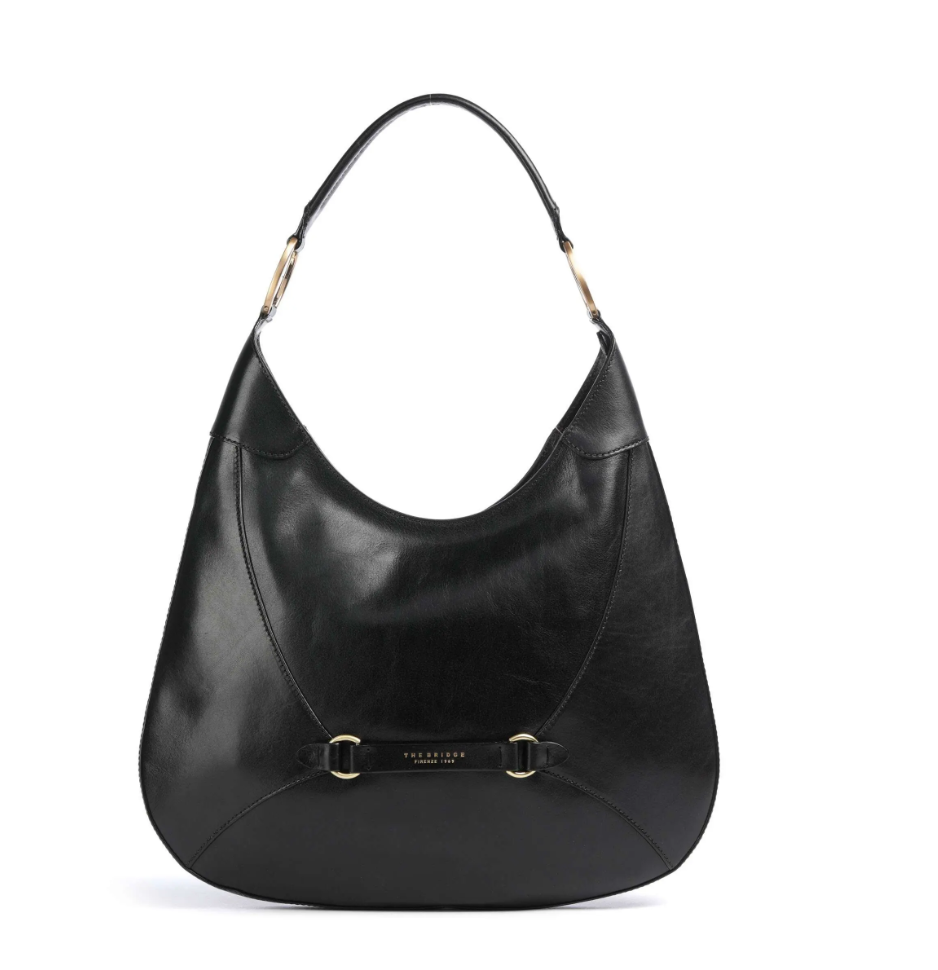 Borsa in cuoio, modello hobo, chiusa con zip e particolare motivo decorativo sul davanti. Comoda e leggera per la quotidianità, si indossa a spalla.