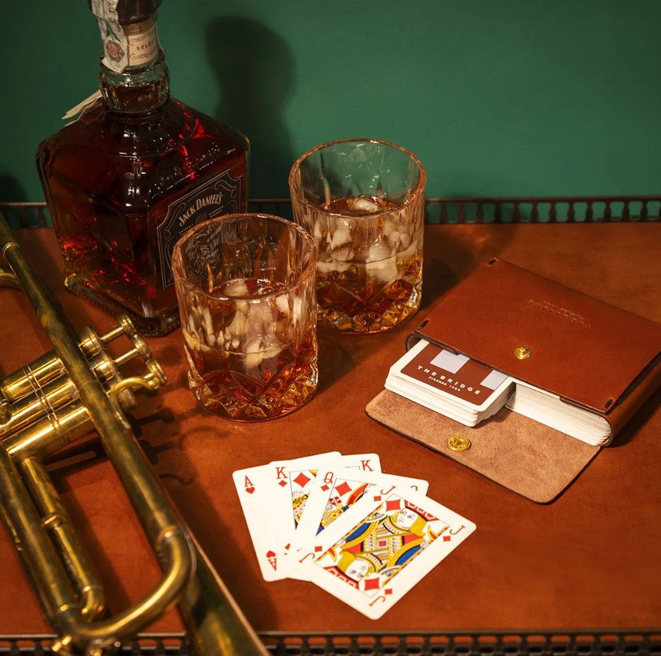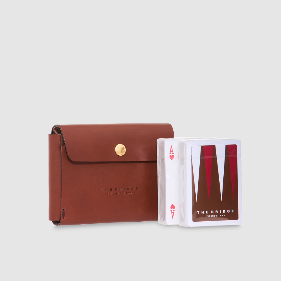 Carte da gioco racchiuse in una raffinata custodia in cuoio. Un oggetto particolare ed elegante perfetto come idea regalo.