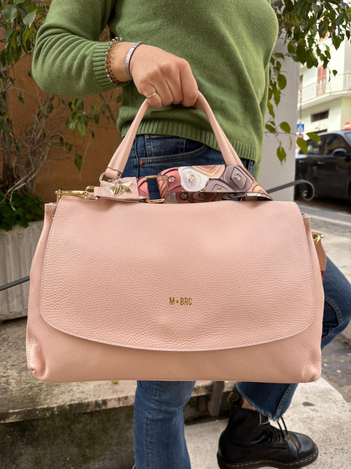 Borsa a mano in vera pelle Made in Italy con doppia tracolla