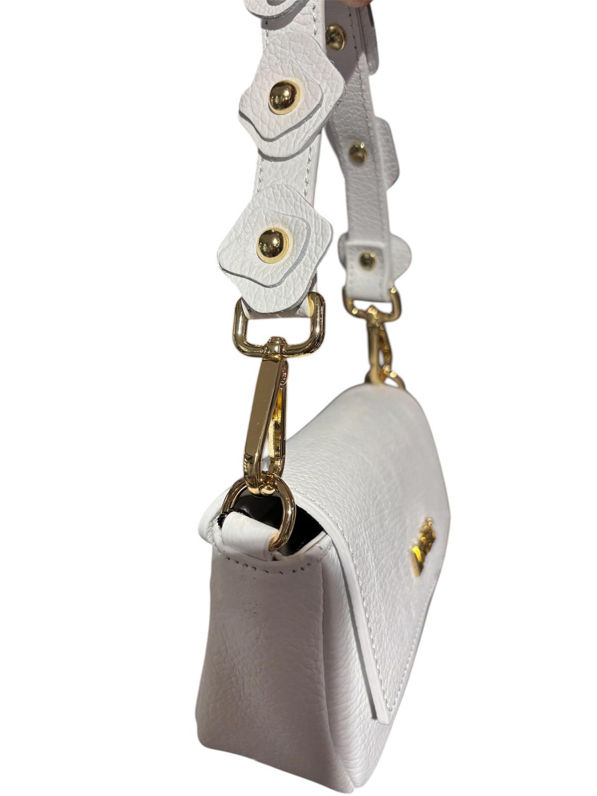 La mini bag rappresenta l'essenza della pelletteria toscana contemporanea. Disegnata dallo stilista fiorentino si distingue per il raffinato dettaglio dei fiori in pelle applicati sul manico: un tocco romantico e distintivo della collezione! Realizzata in vera pelle seguendo la tradizione artigianale Made in Italy.  La linea Petit è pensata per la donna che cerca un accessorio compatto ma di forte impatto visivo. Perfetta sia come borsa a mano che come accessorio elegante per eventi speciali.