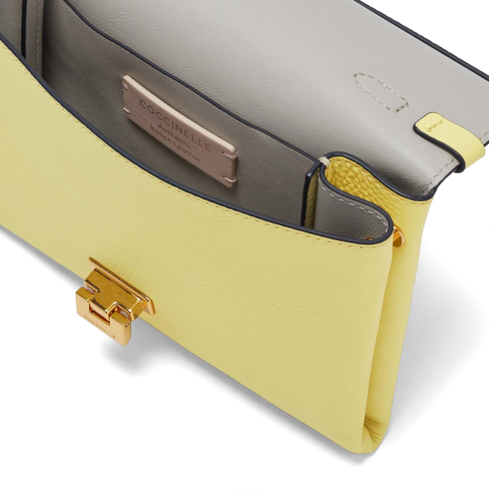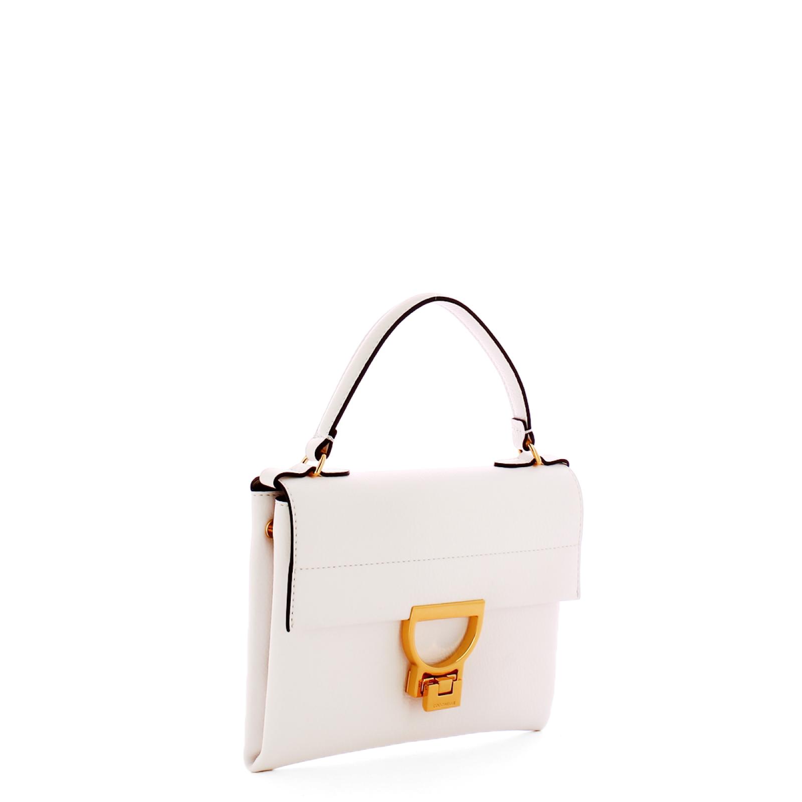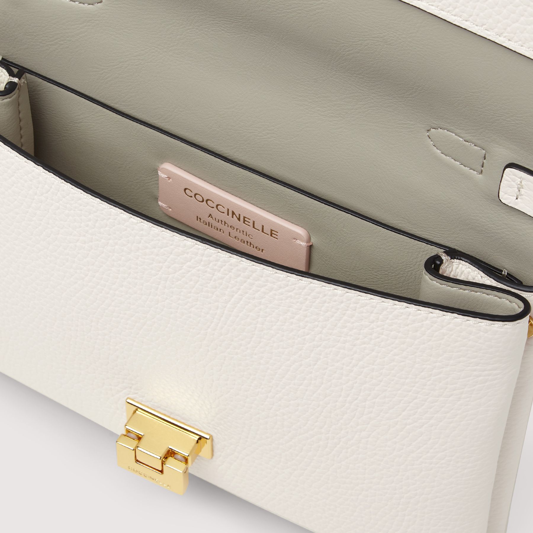 Mini bag in pelle e dal gusto retrò degli anni ’70, per una donna eclettica e femminile. Particolare è la chiusura: rielaborazione grafica del logo grazie alla lettera C rovesciata. La pochette è estremamente versatile tanto da essere indossata a mano o con la tracolla regolabile e removibile, così da combinare perfettamente modernità ed eleganza.