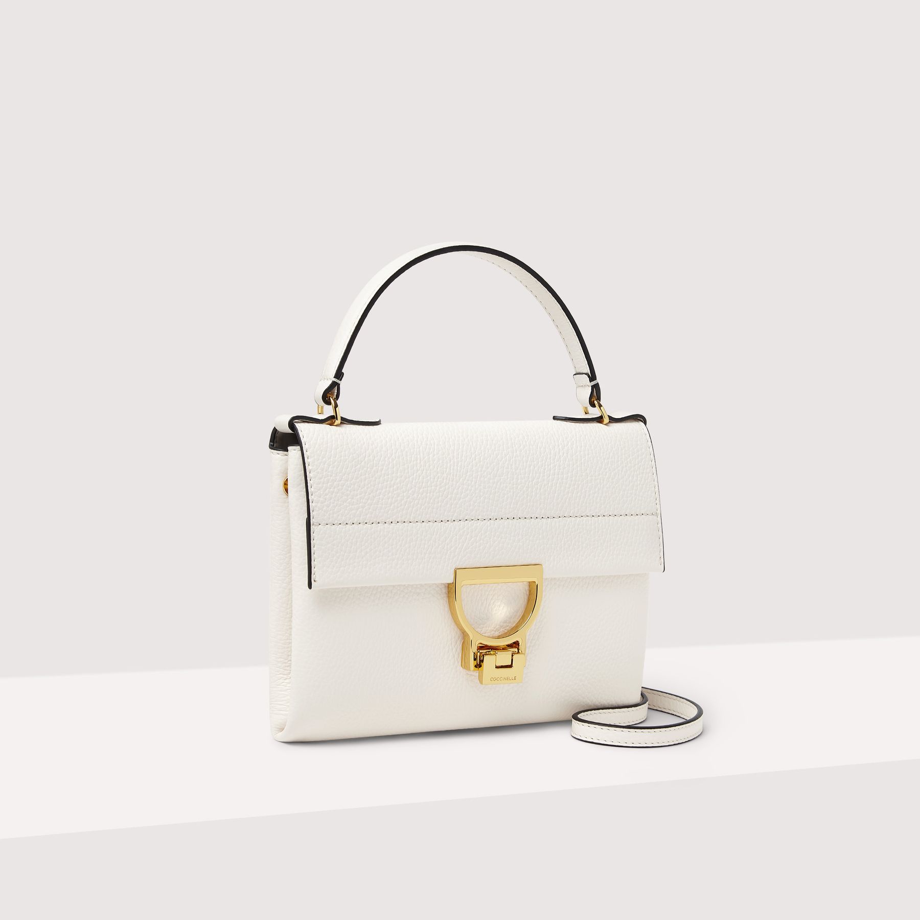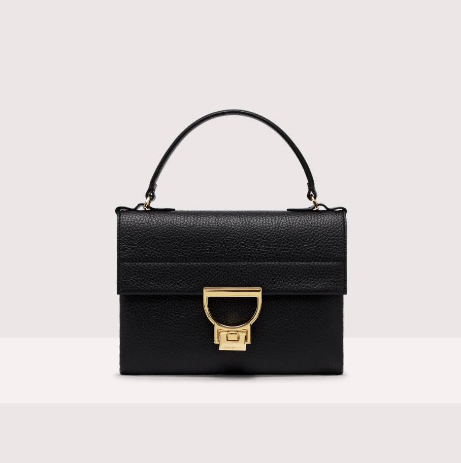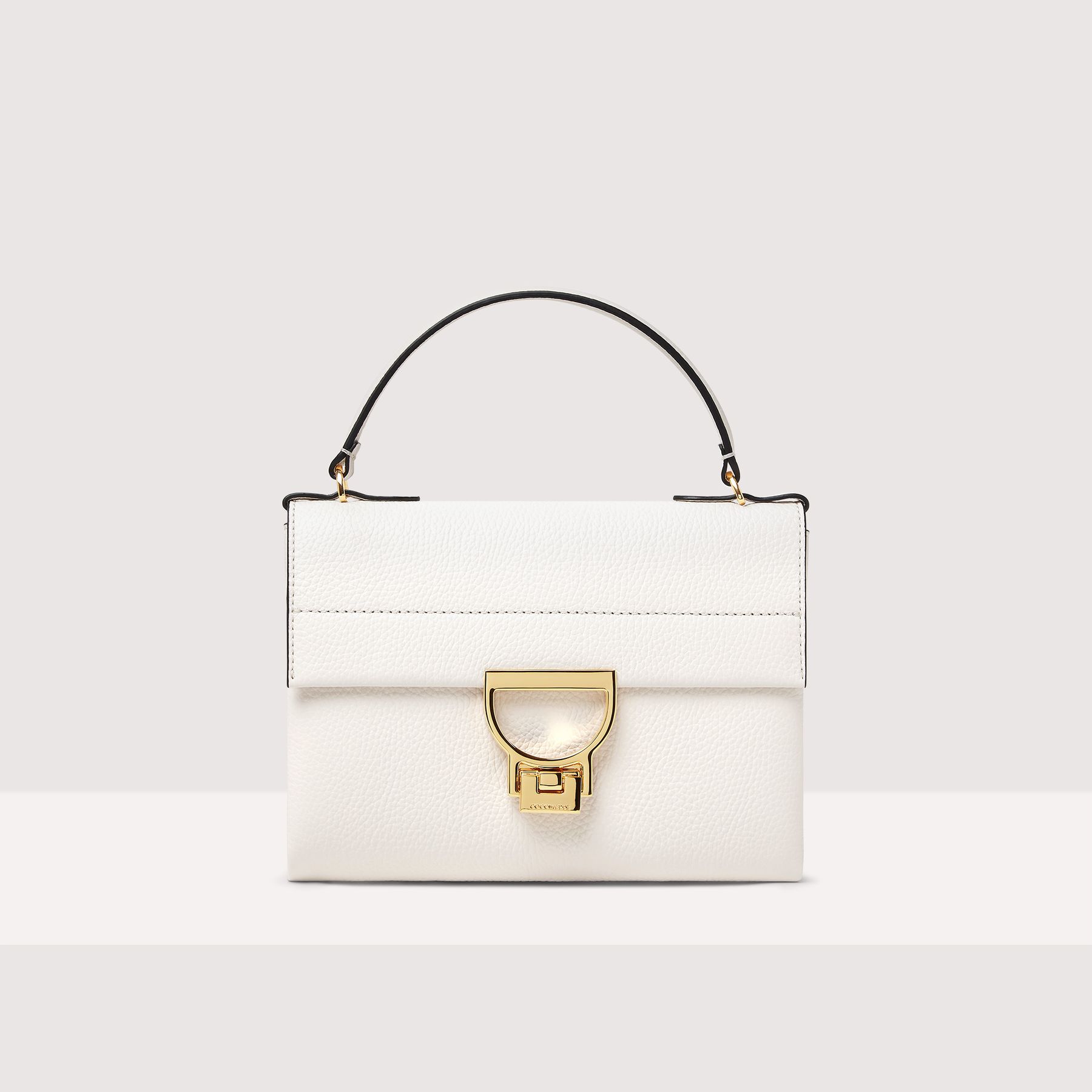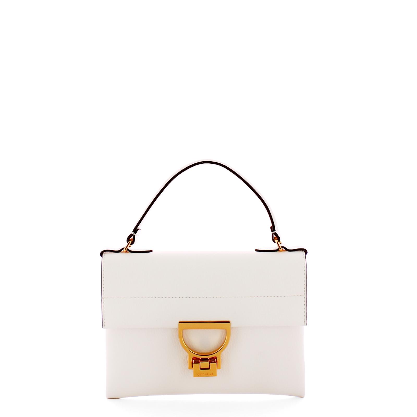 Mini bag in pelle e dal gusto retrò degli anni ’70, per una donna eclettica e femminile. Particolare è la chiusura: rielaborazione grafica del logo grazie alla lettera C rovesciata. La pochette è estremamente versatile tanto da essere indossata a mano o con la tracolla regolabile e removibile, così da combinare perfettamente modernità ed eleganza.