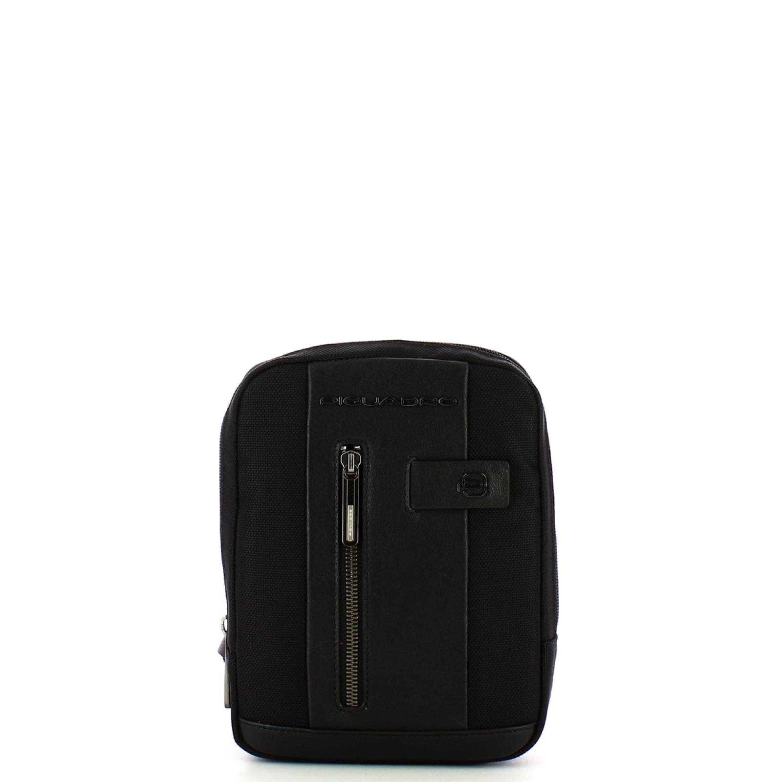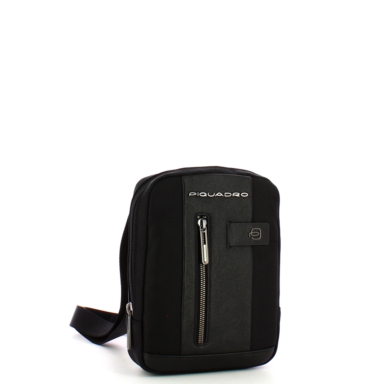 Borsello in tessuto con dettagli in pelle porta con iPad®mini con tracolla regolabile e taschino frontale. Ampio comparto centrale con chiusura con zip, interno foderato e dotato di tasche.