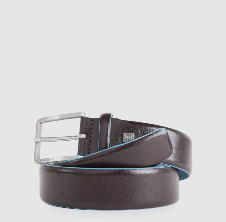 Cintura in pelle dai profili azzurri tipici della linea BlueSquare. Adatta a qualsiasi look casual chic.