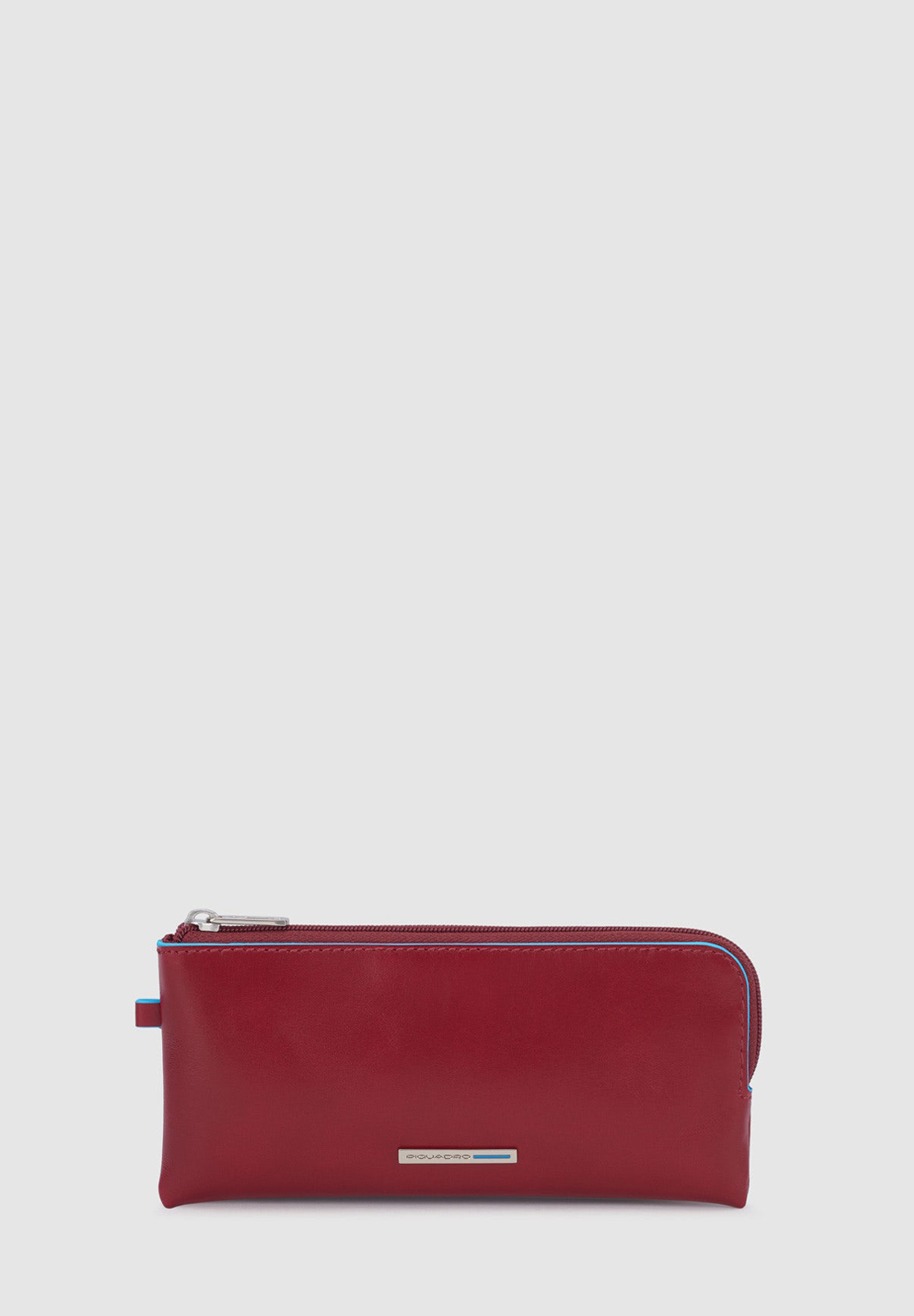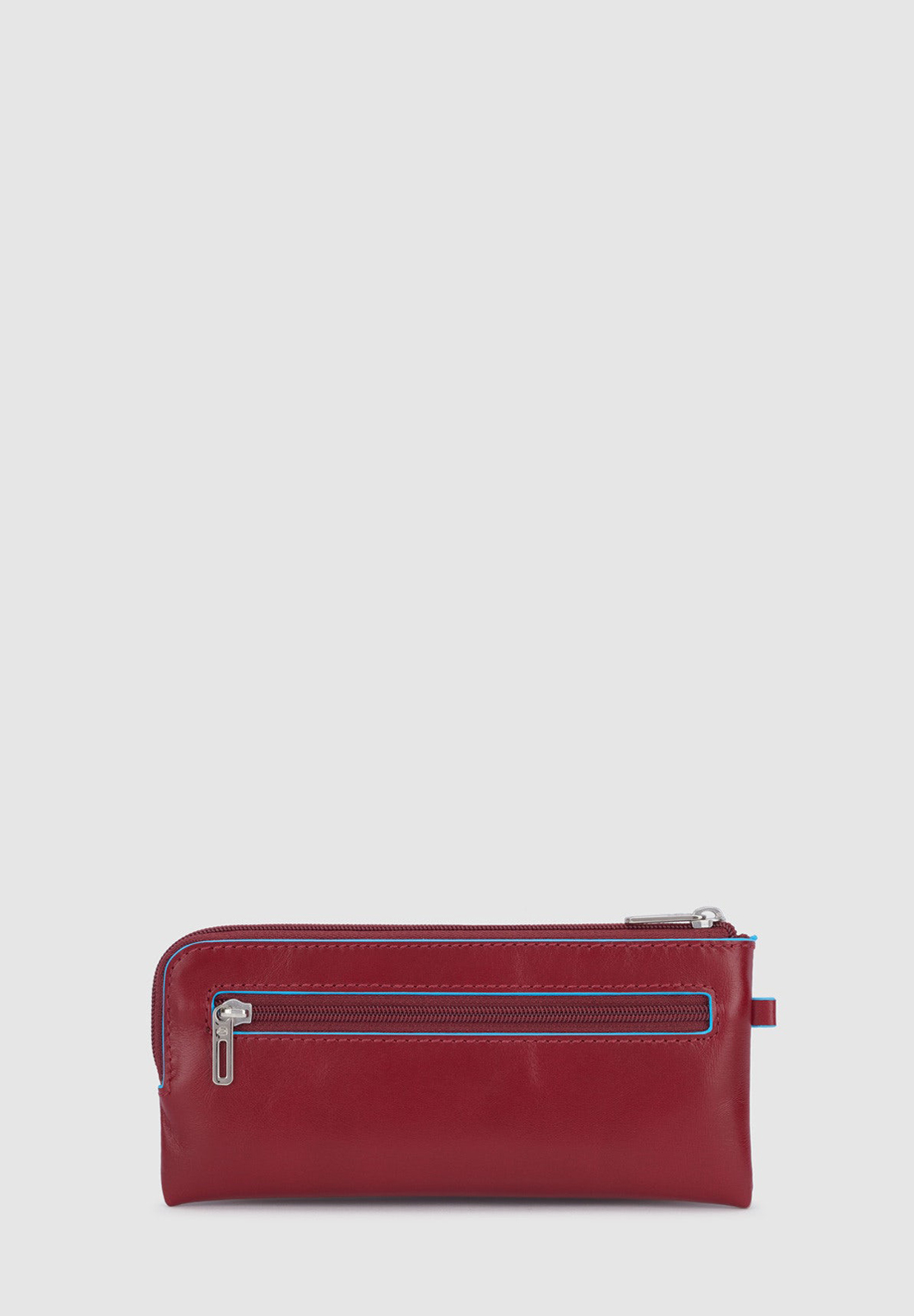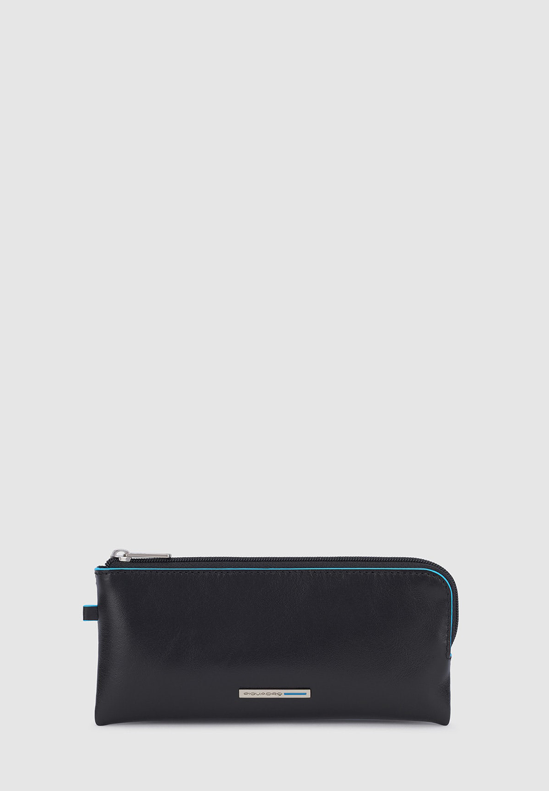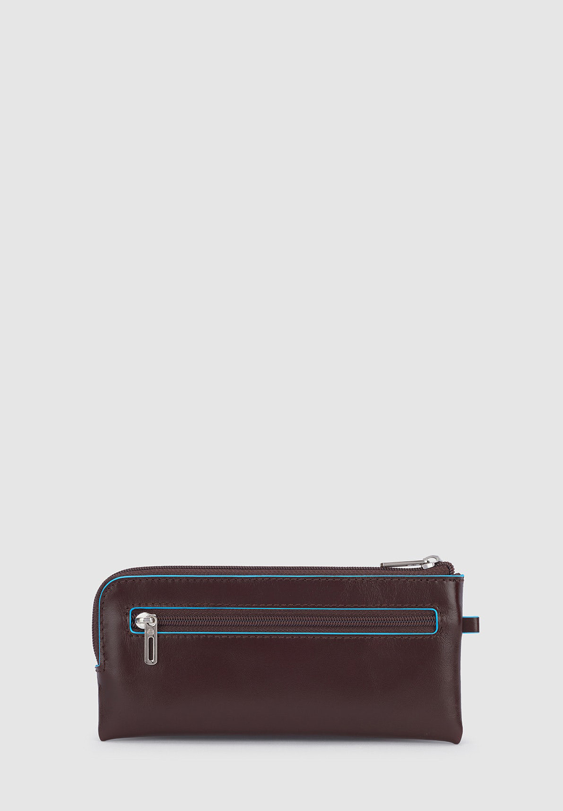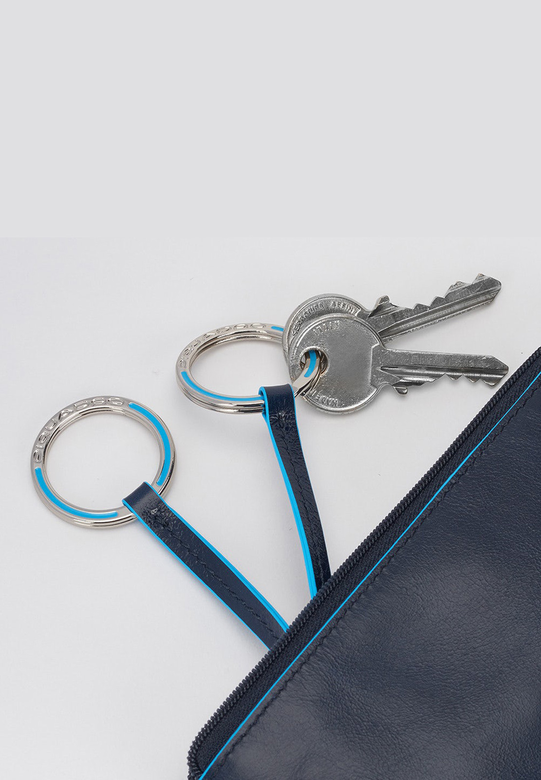 Portachiavi in pelle con il classico profilo azzurro, modello bustina chiuso con zip. All'interno due anelli portachiavi, all'esterno mini cerniera. Comodo non solo per le chiavi (anche quelle lunghe) ma anche come portamonete da borsa.