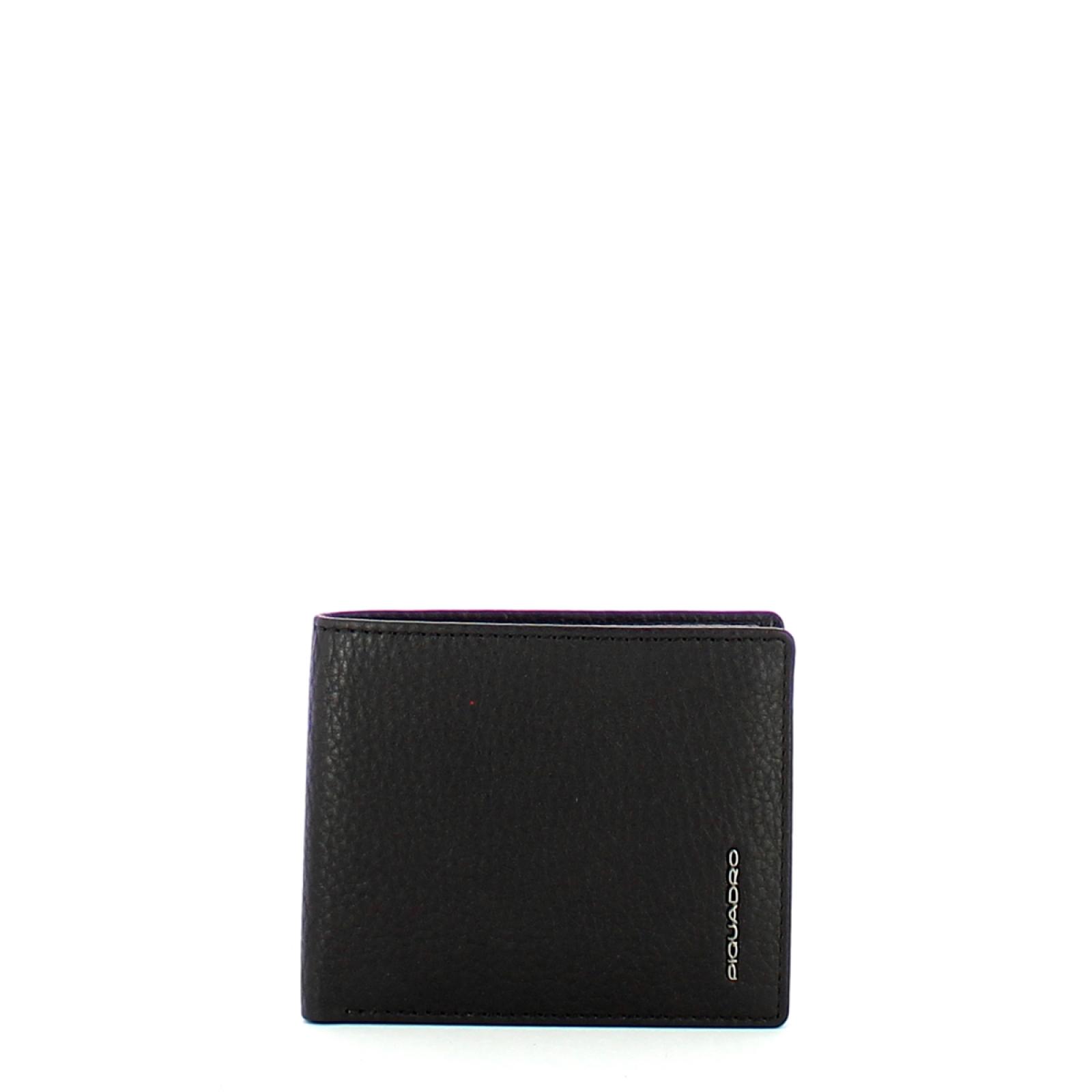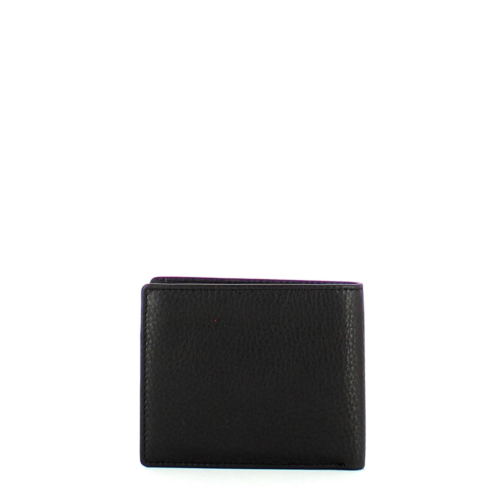 Portafoglio in pelle con portamonete e protezione anti frode RFID. Doppio tascone per le banconote, due slot per le carte di credito di cui uno removibile.