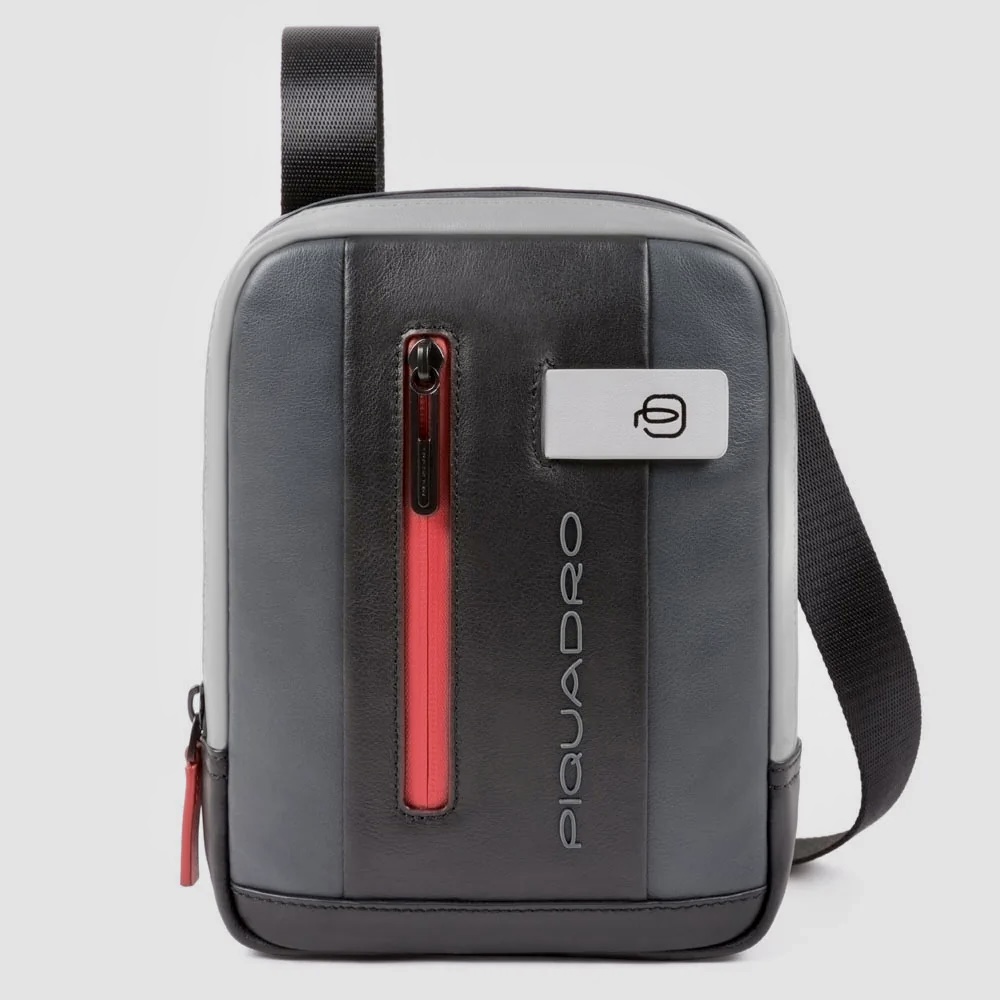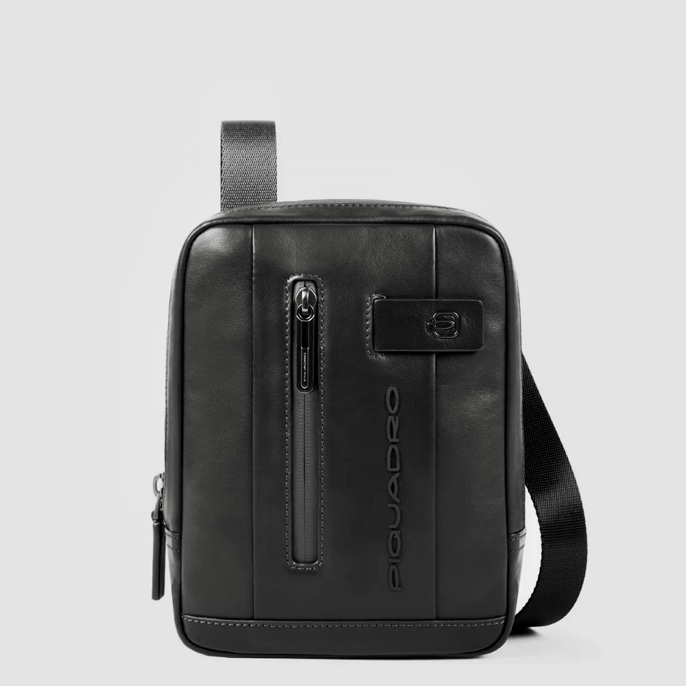 Borsello in pelle con tracolla in tessuto regolabile. Chiuso da cerniera superiore ed internamente taschini per riporre al meglio gli effetti personali. Porta iPad mini e cuffiette.