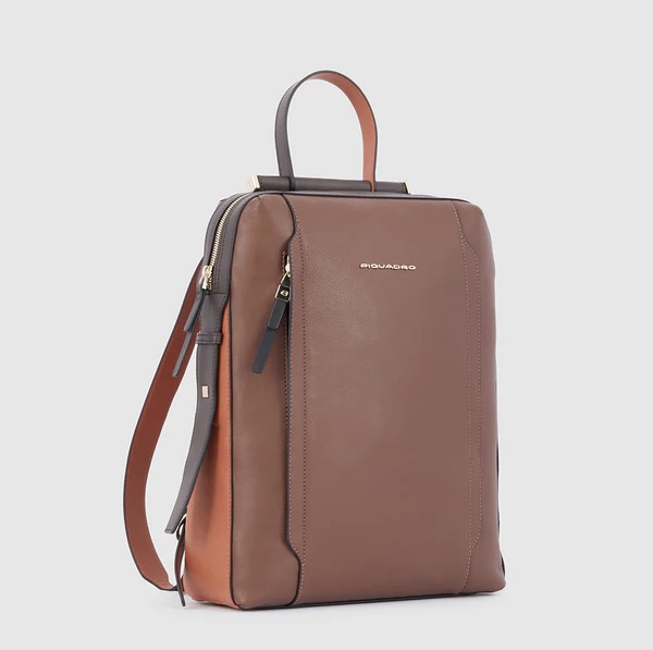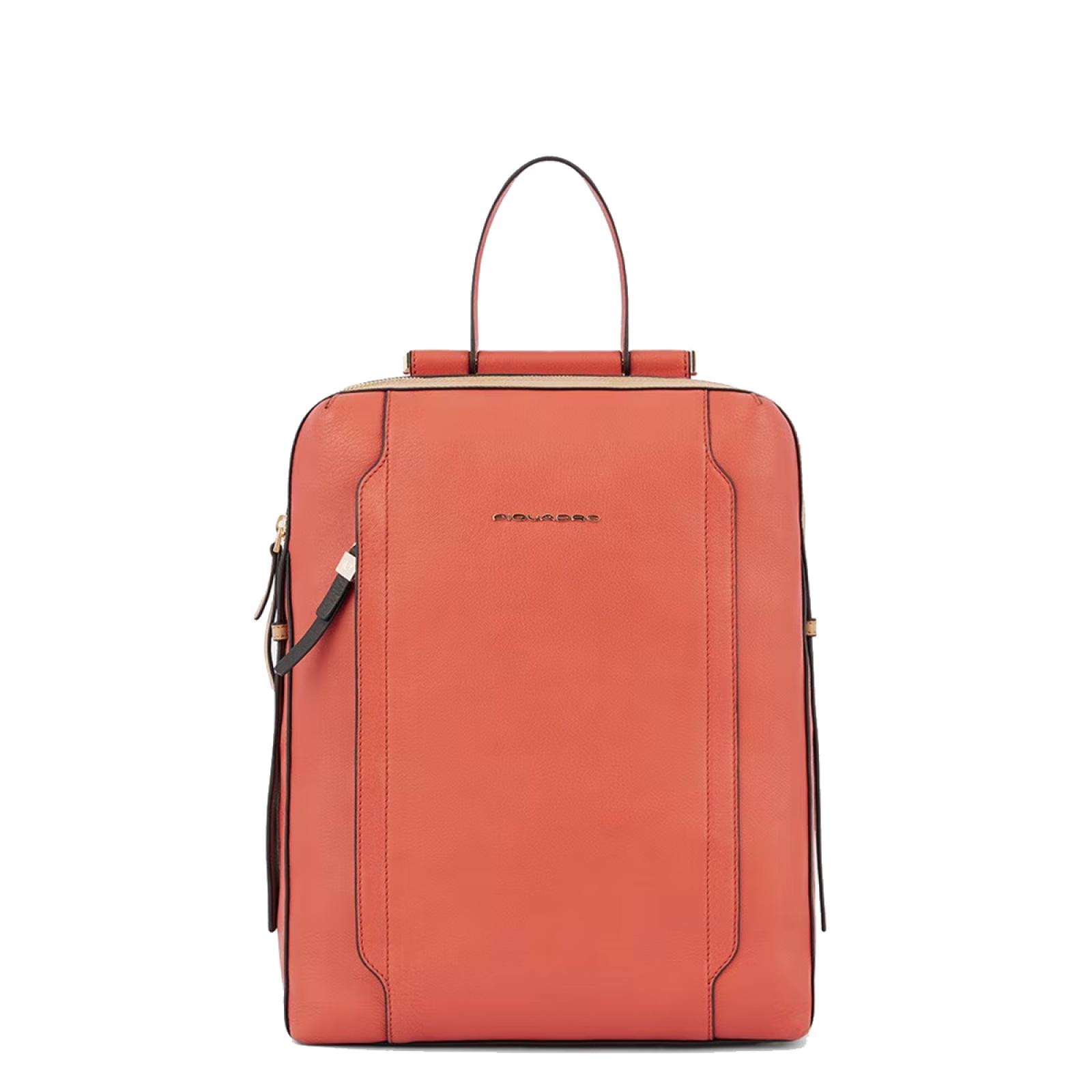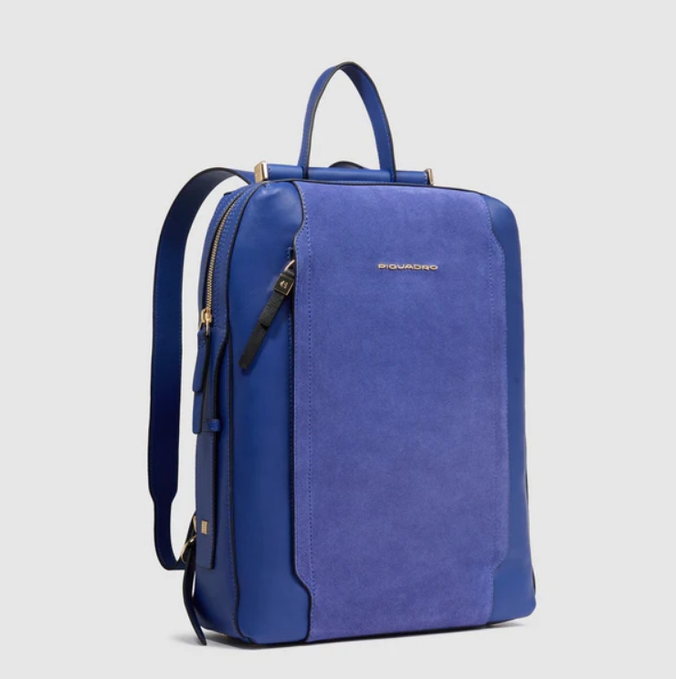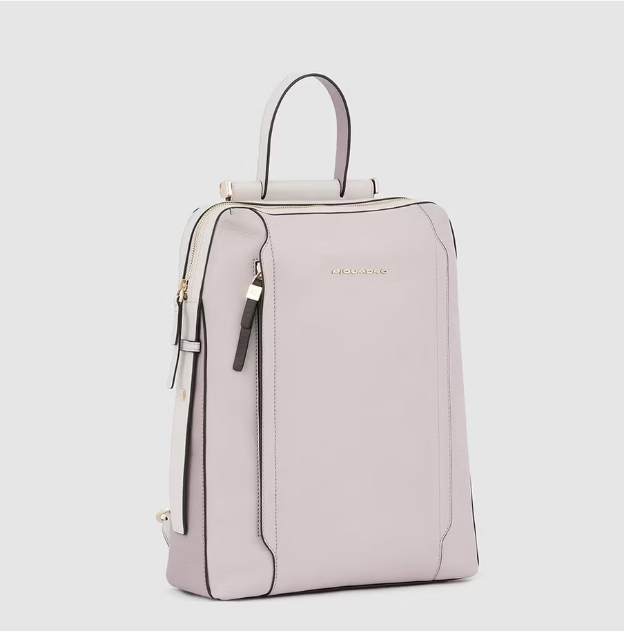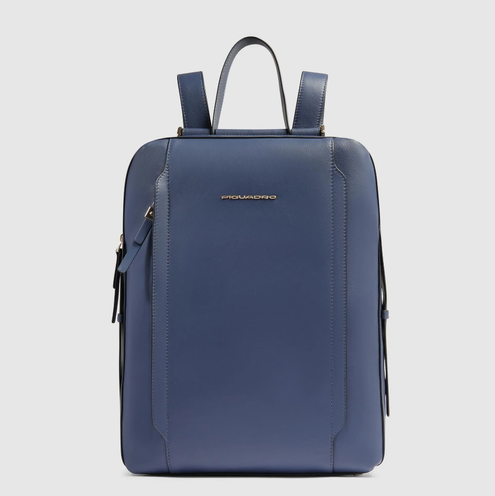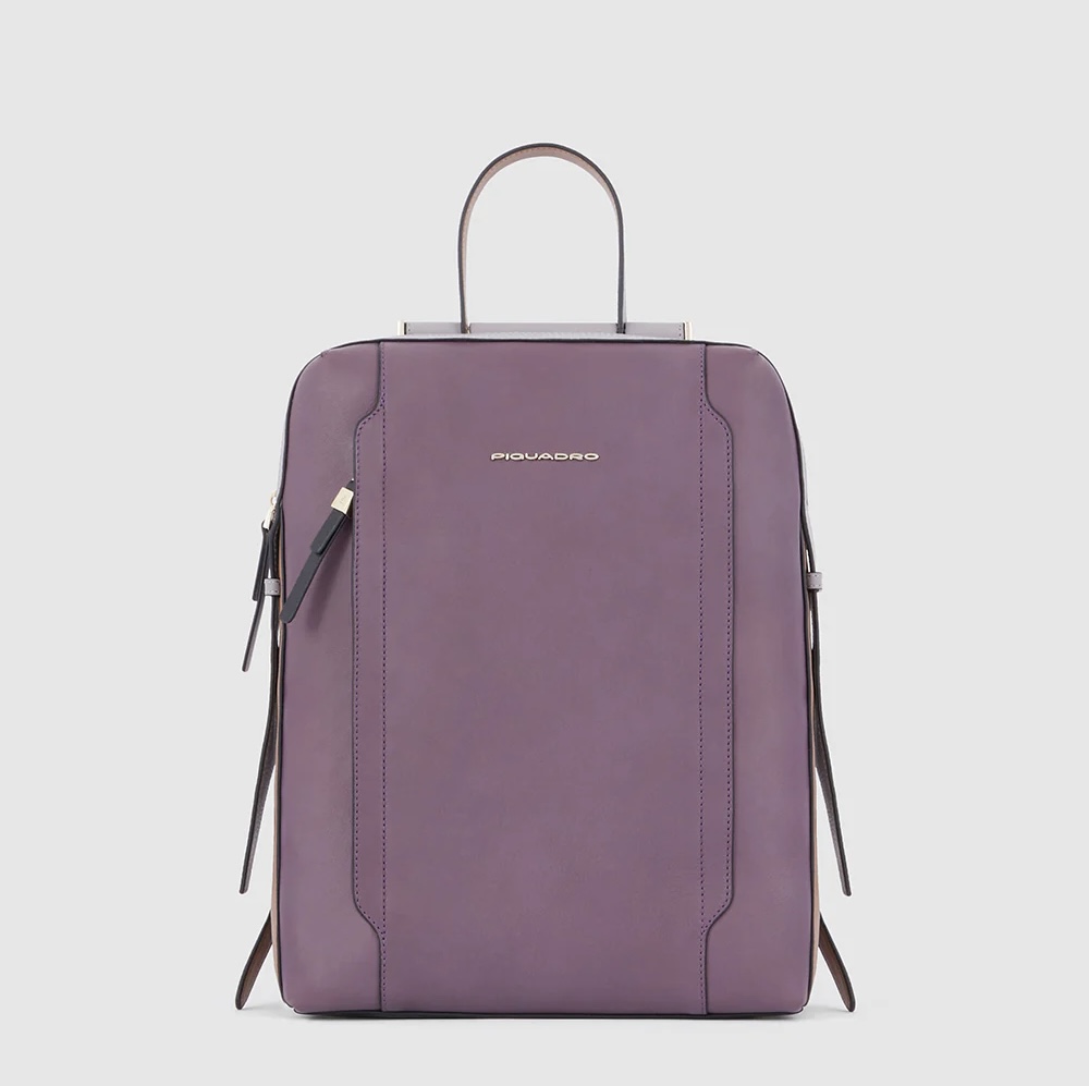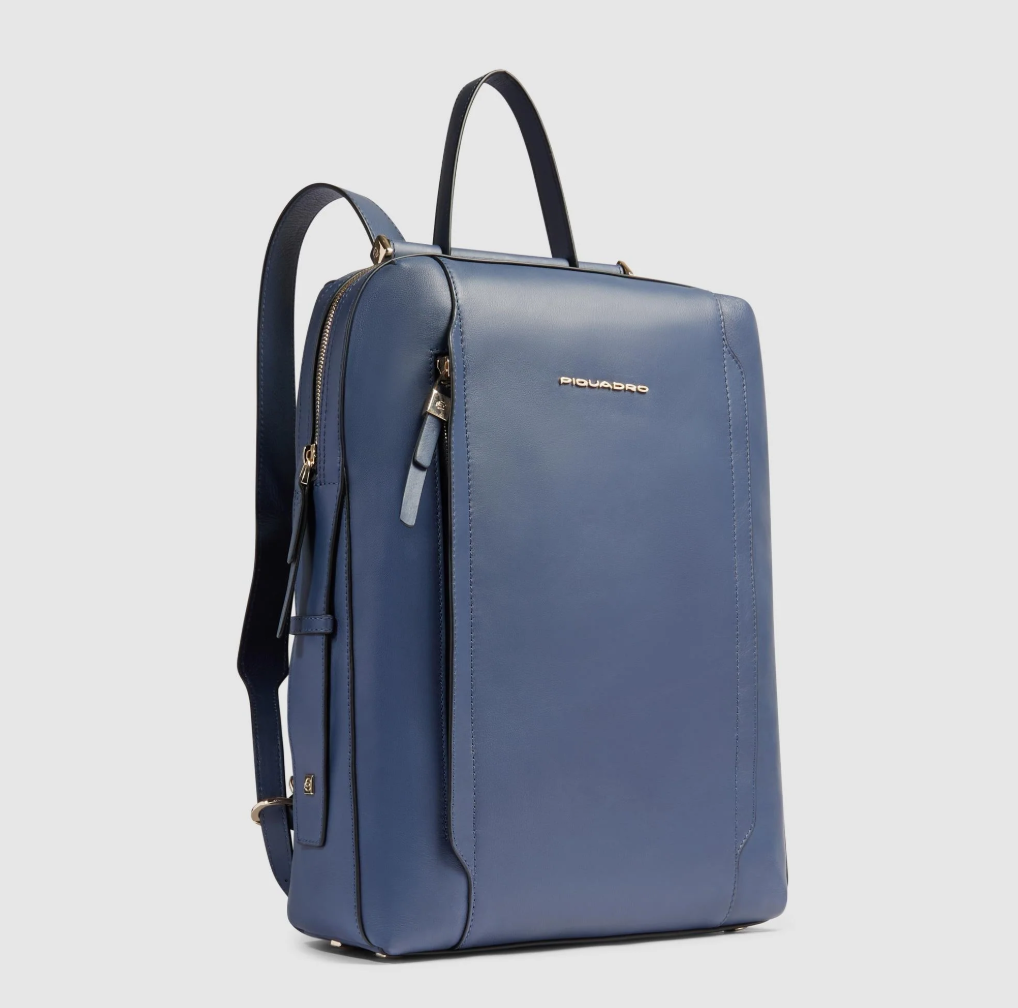 Zaino in pelle porta pc da 14". È un elegante e funzionale accessorio business donna; dotato di manichetto superiore e spallacci in pelle, con fascetta posteriore per aggancio a trolley. Internamente suddiviso in comode tasche imbottite per riporre gli oggetti personali. Comodo taschino frontale con cerniera.