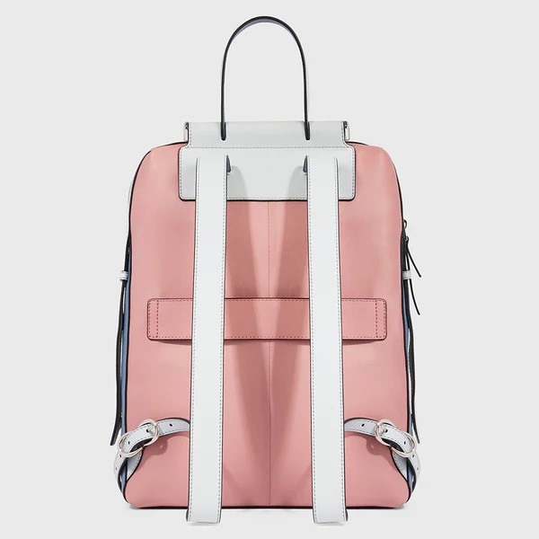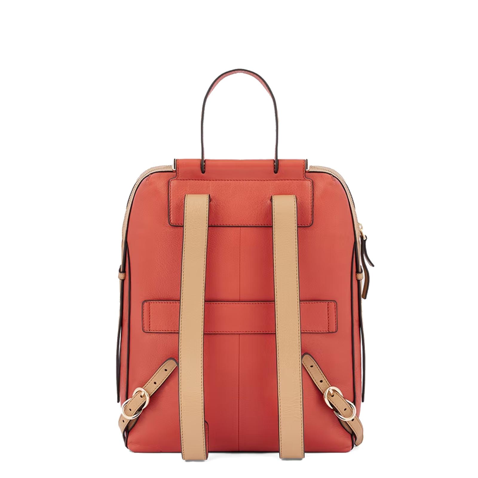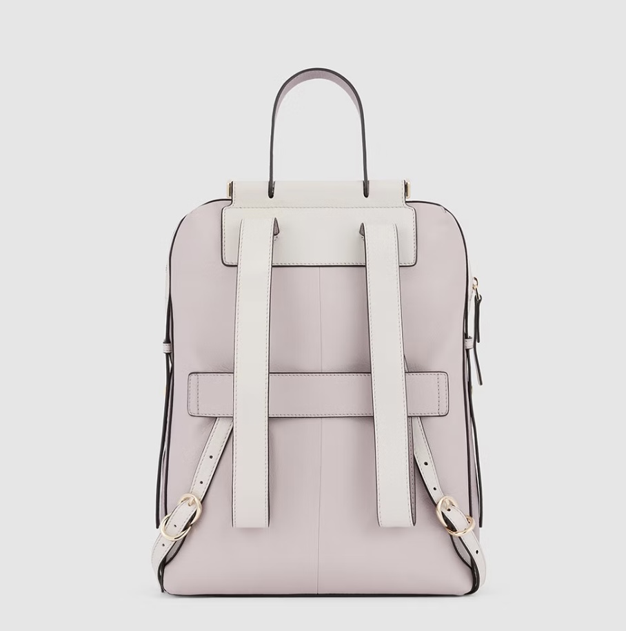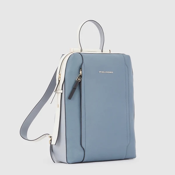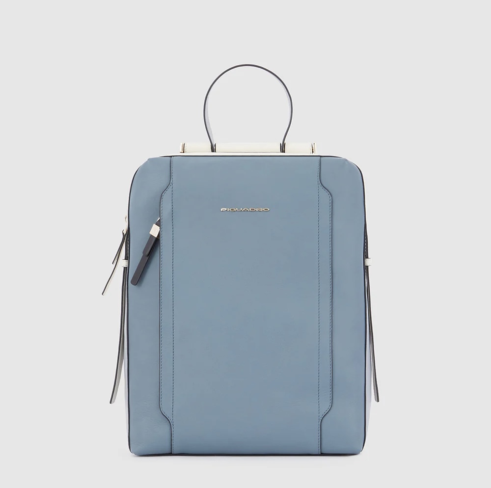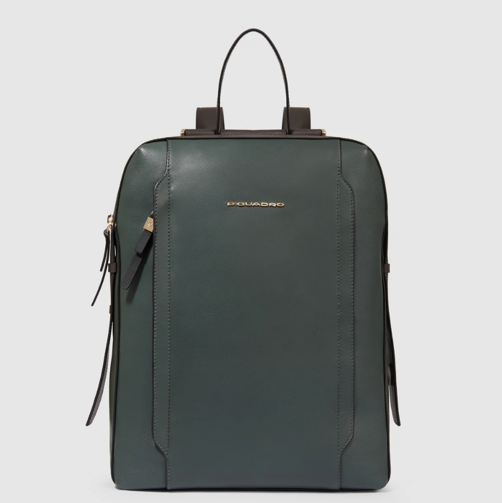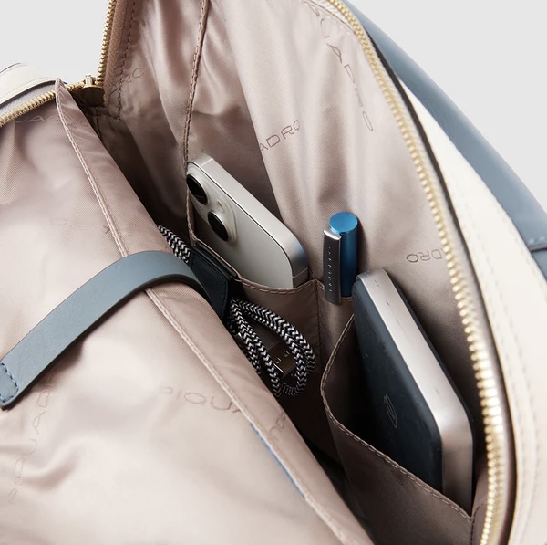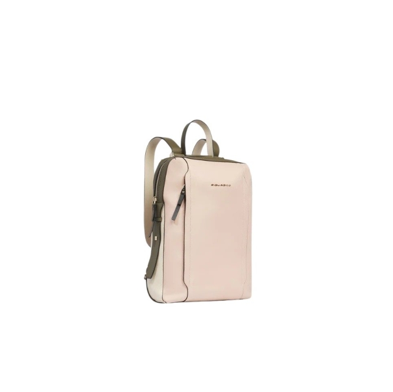 Zaino in pelle porta pc da 14". È un elegante e funzionale accessorio business donna; dotato di manichetto superiore e spallacci in pelle, con fascetta posteriore per aggancio a trolley. Internamente suddiviso in comode tasche imbottite per riporre gli oggetti personali. Comodo taschino frontale con cerniera.
