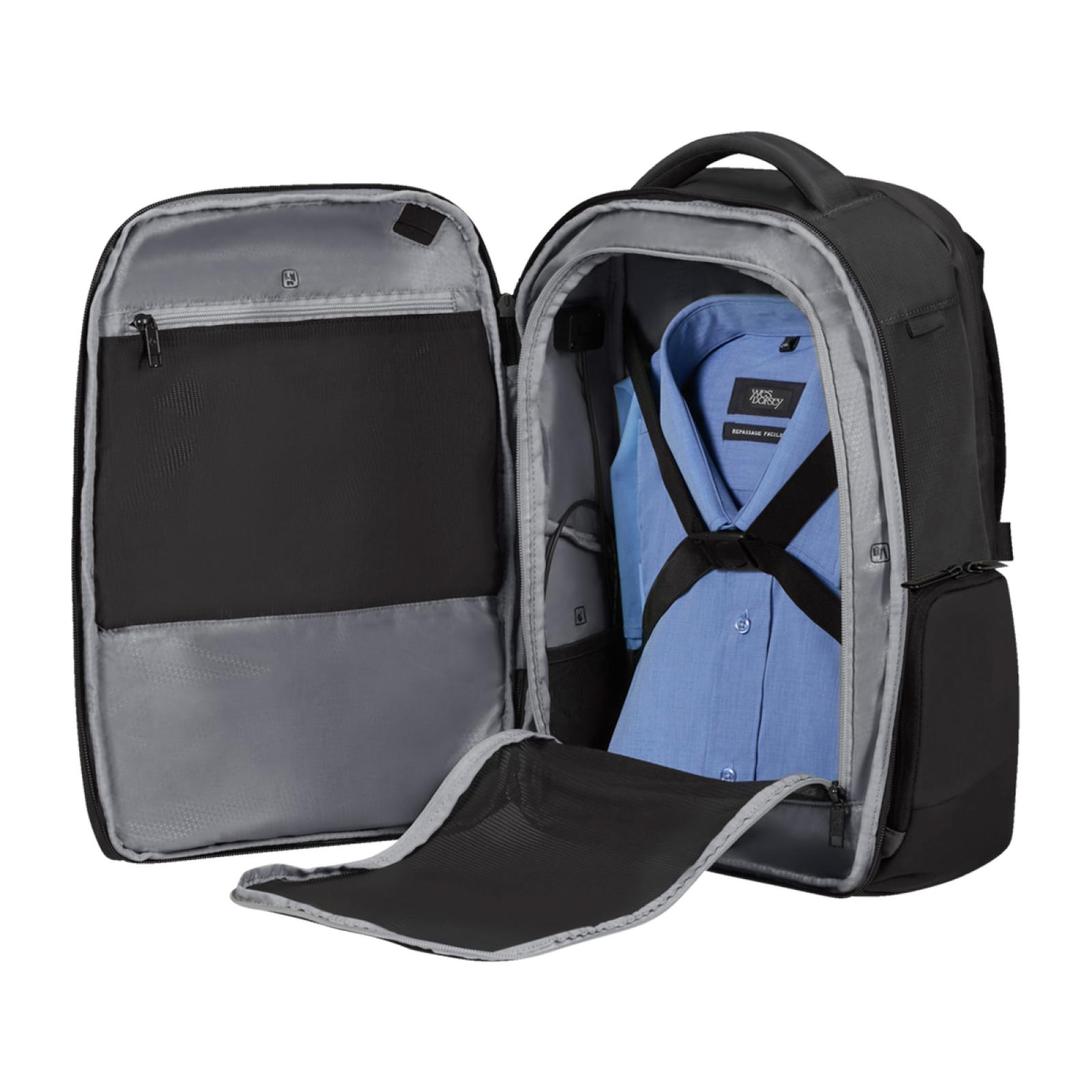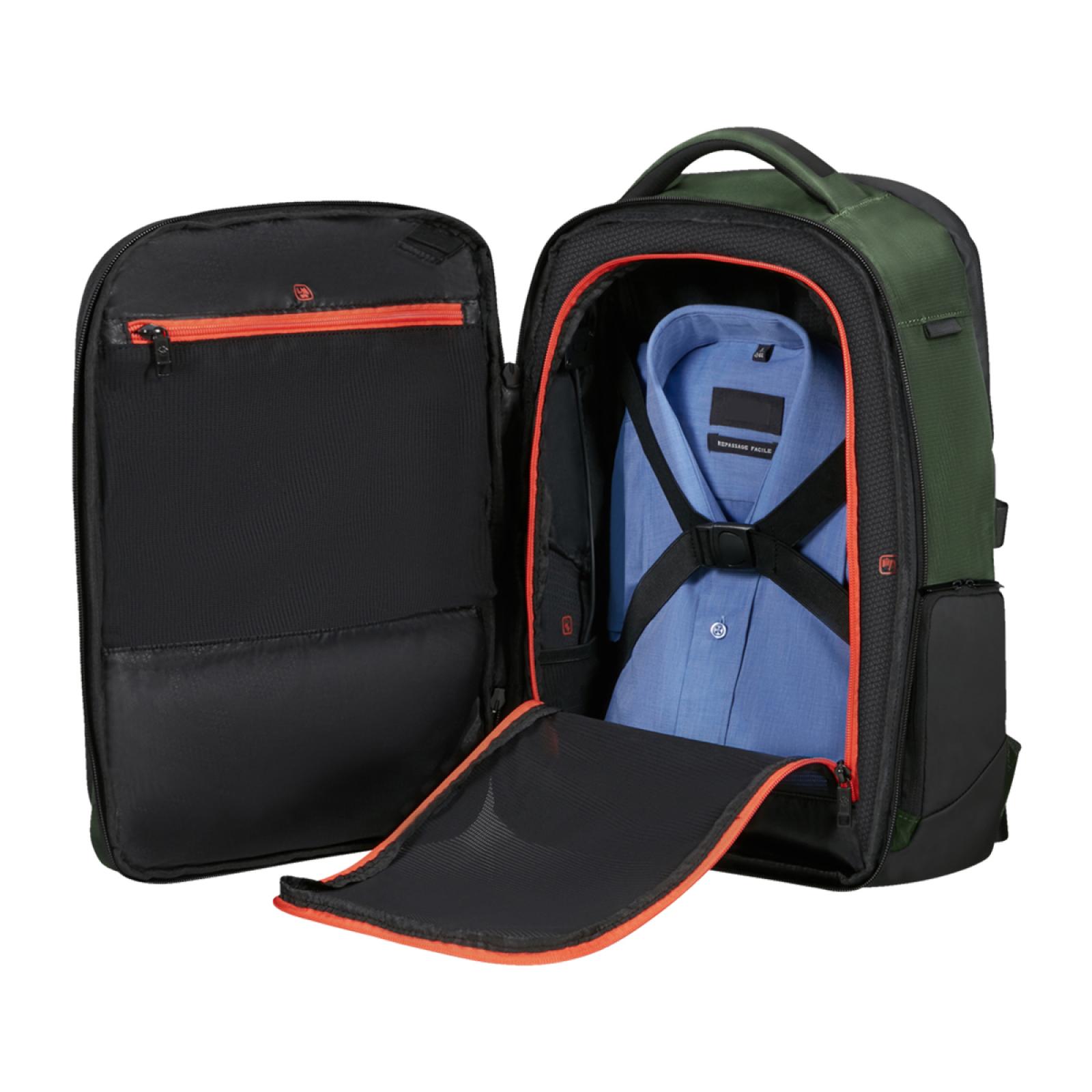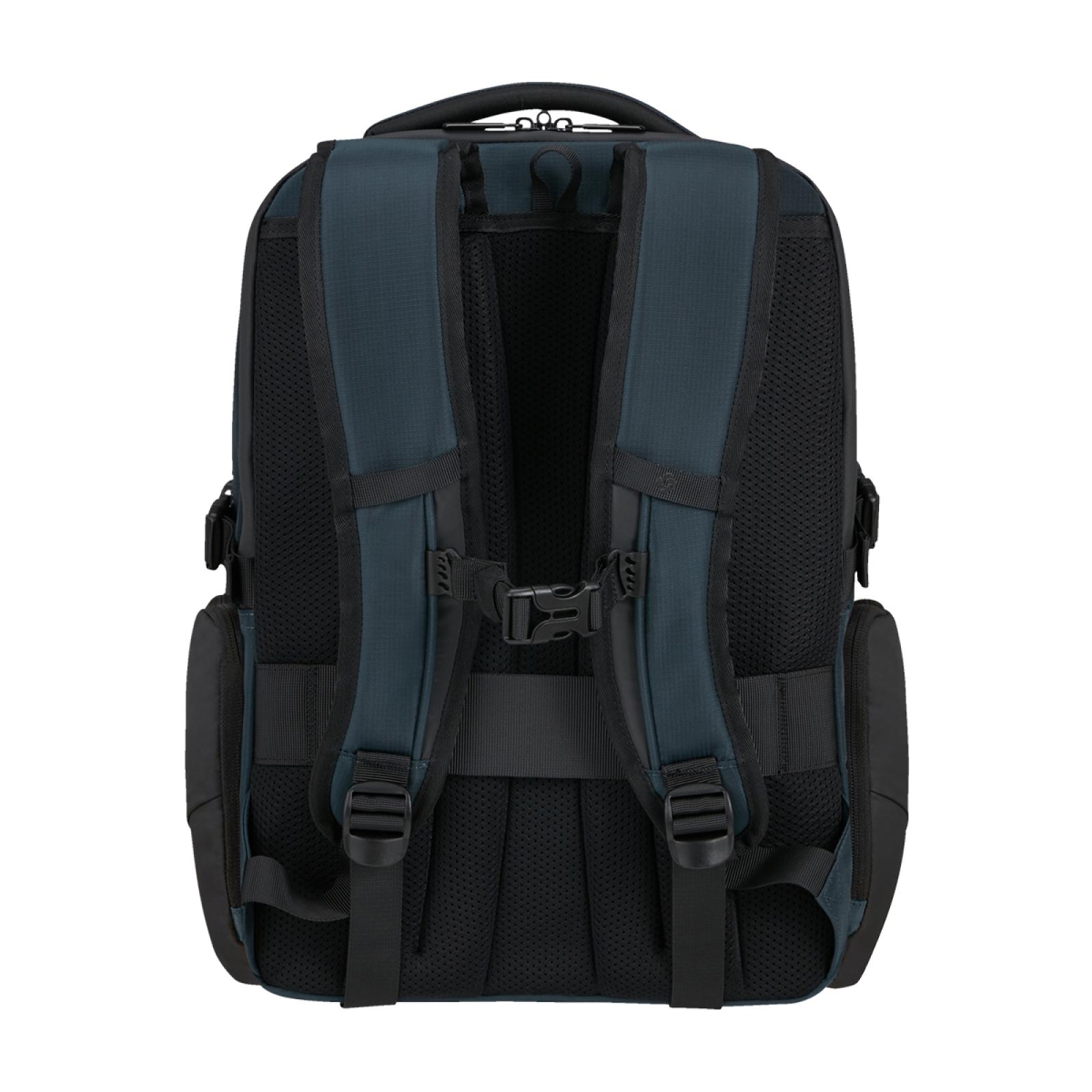 Zaino in tessuto porta pc da 15.6". Sportivo e funzionale accessorio da lavoro o da tempo libero realizzato in tessuto, con comodo manichetto superiore, spallacci imbottiti e regolabili e fascetta posteriore per aggancio al trolley. Importanti le tasche laterali per la borraccia o l'ombrello. Chiuso completamente da zip ha nella seconda apertura le cinghie ferma abiti, perfetto come bagaglio a mano.