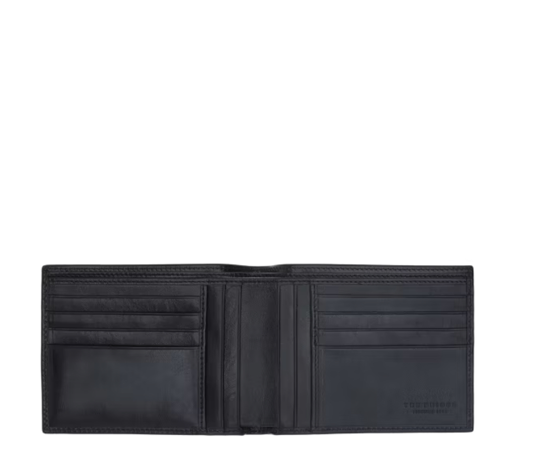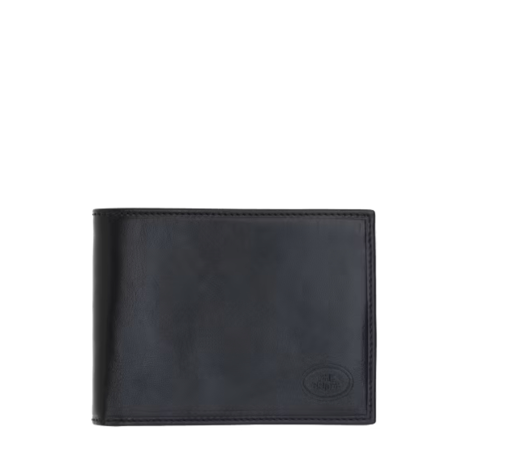 Portafoglio in cuoio con doppio soffietto per le banconote e gli slot per le carte di credito.
