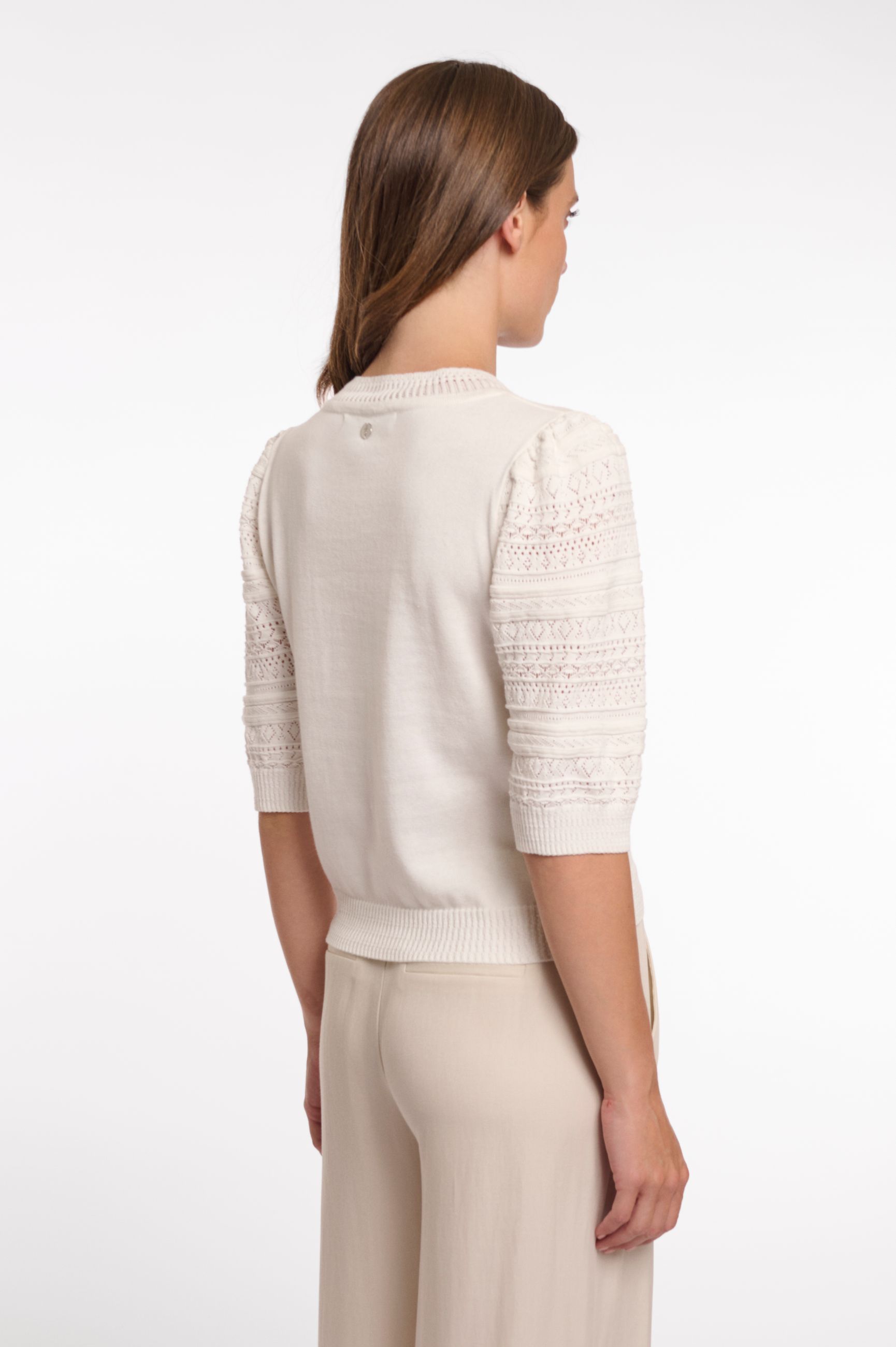 Femminilità e trasparenze delicate: la maglia in pizzo leggero per un look romantico e chic.